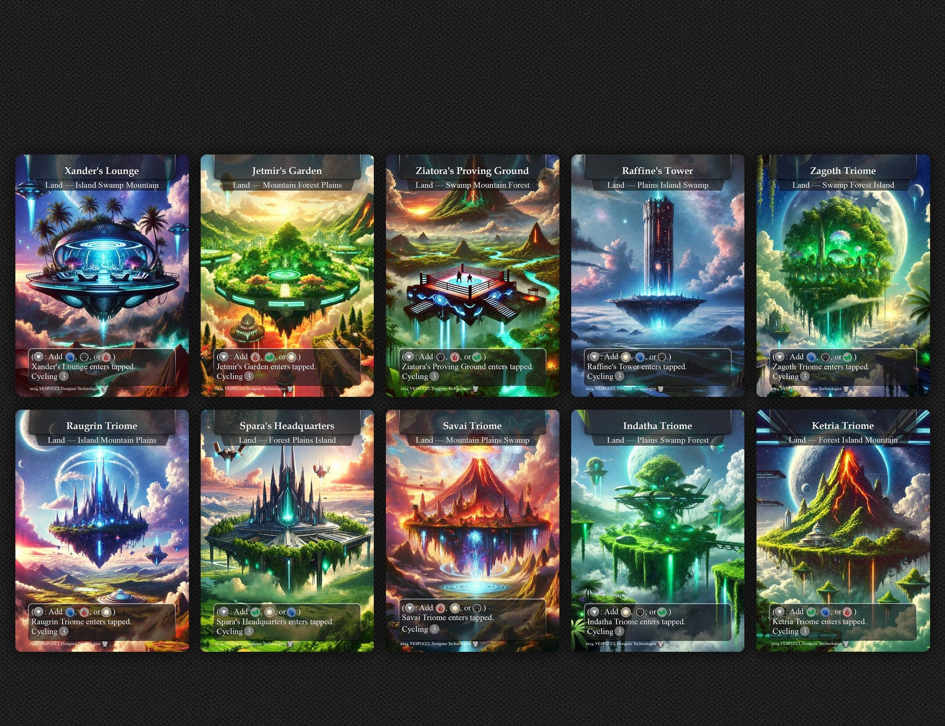 mtg land bundle, dual lands proxy, fetch land proxies, shock land set, commander proxy lands, mtg utility land proxies, triome mtg cards, altered land pack, edh mana base, mtg full art proxies
