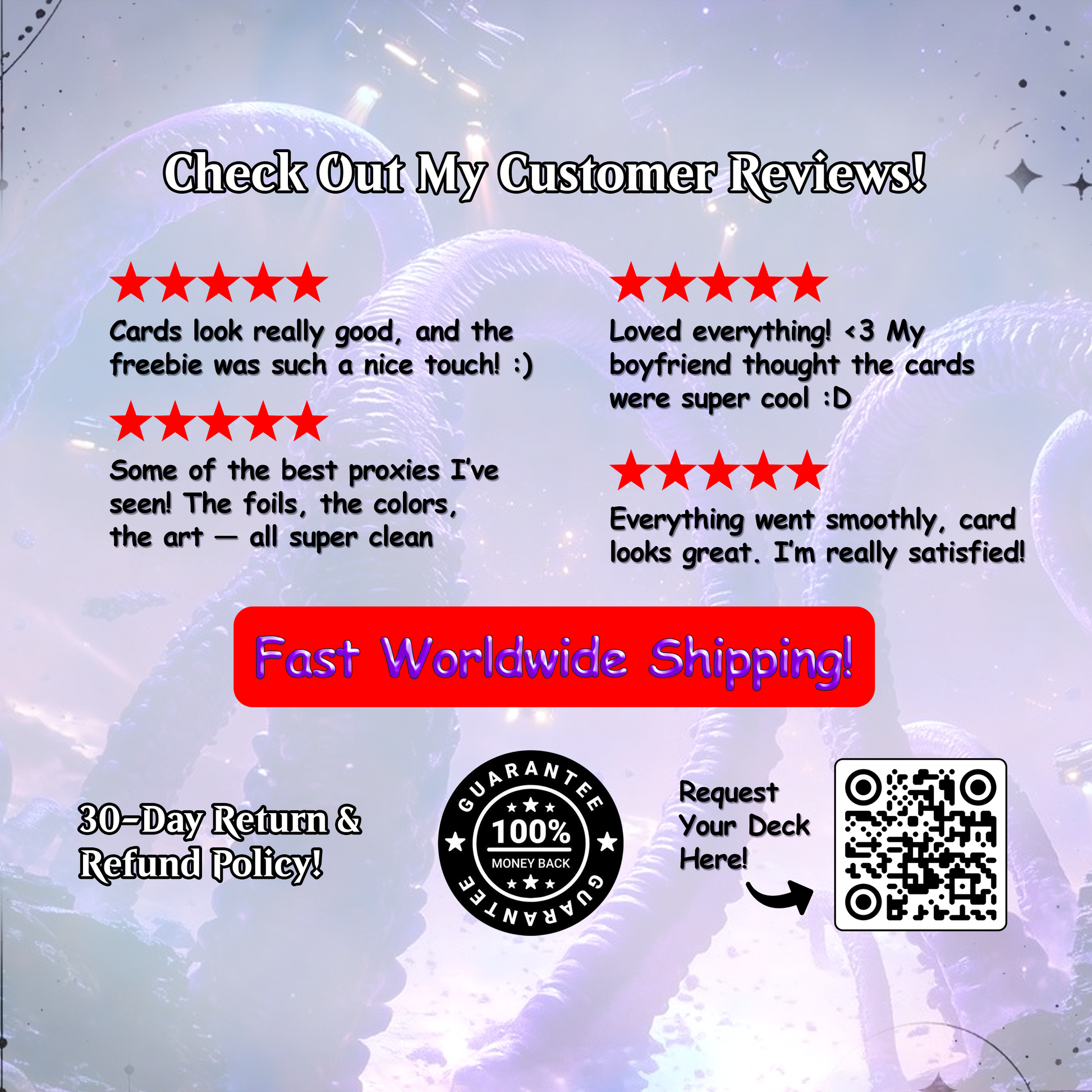 We encourage you to explore the photos and videos on our medias. If you have any questions or need further information, feel free to reach out to us at support@magicproxy.store —we’re here to help ensure you have the perfect deck for your collection or playstyle.