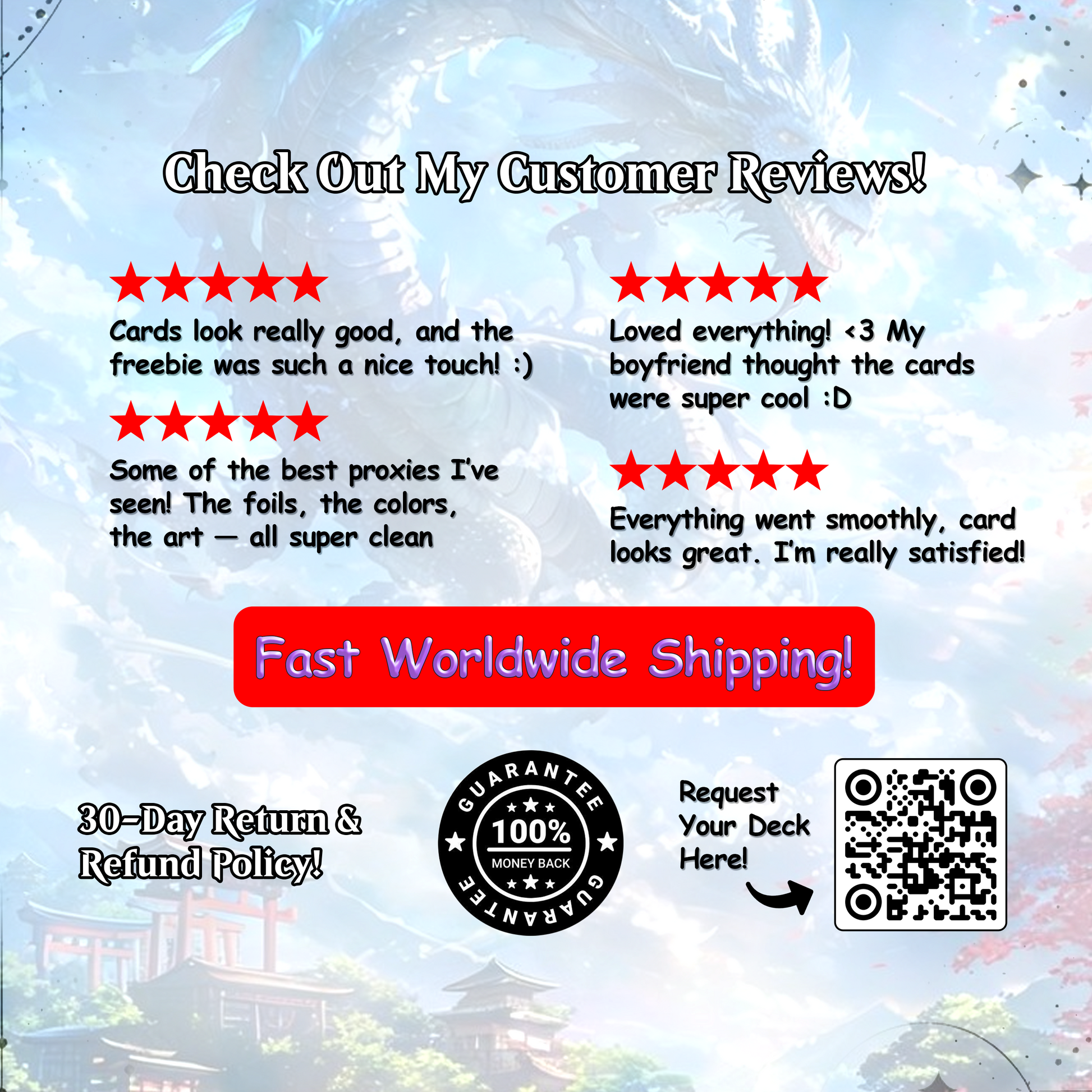 We encourage you to explore the photos and videos on our medias. If you have any questions or need further information, feel free to reach out to us at support@magicproxy.store —we’re here to help ensure you have the perfect deck for your collection or playstyle.