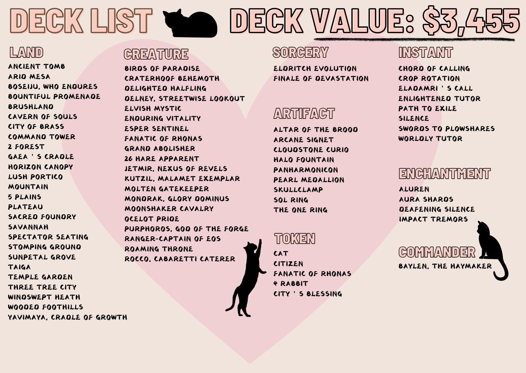Baylen Hare Apparent Proxy Commander Deck, 100 Cards + 8 Free Tokens | Cute Custom Full Art | MuraProxyArt