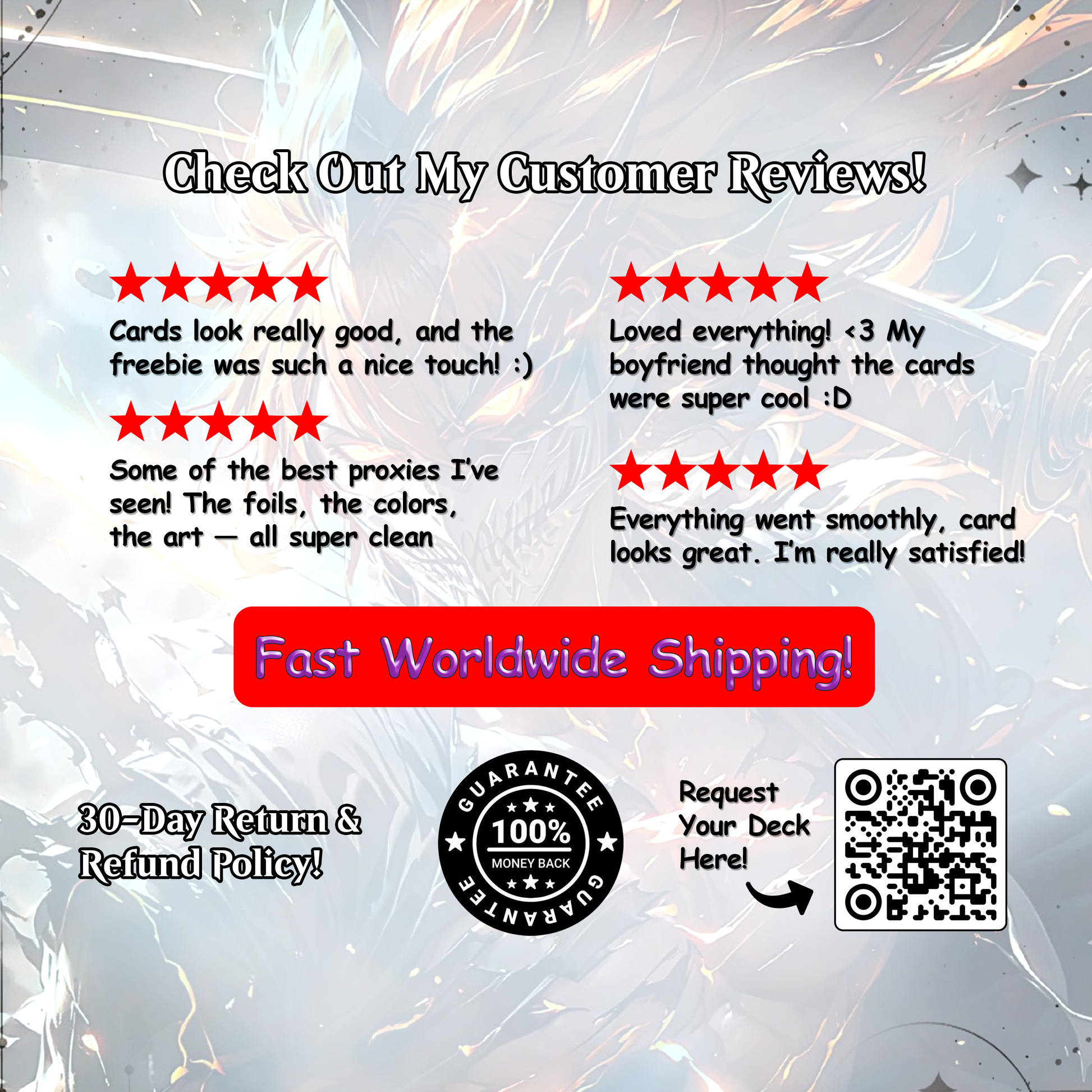 ✔ Printed on glitter foil material that shines and dazzles in every duel
