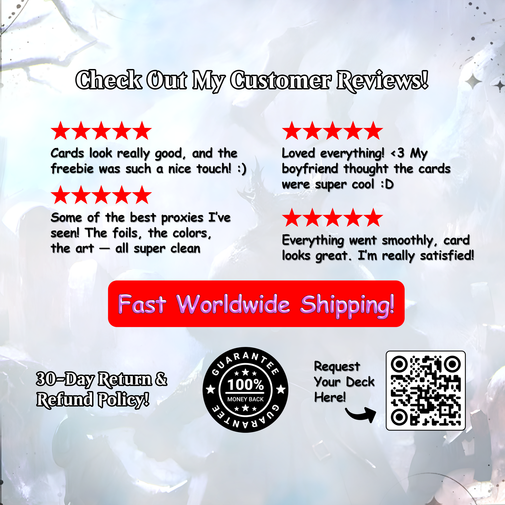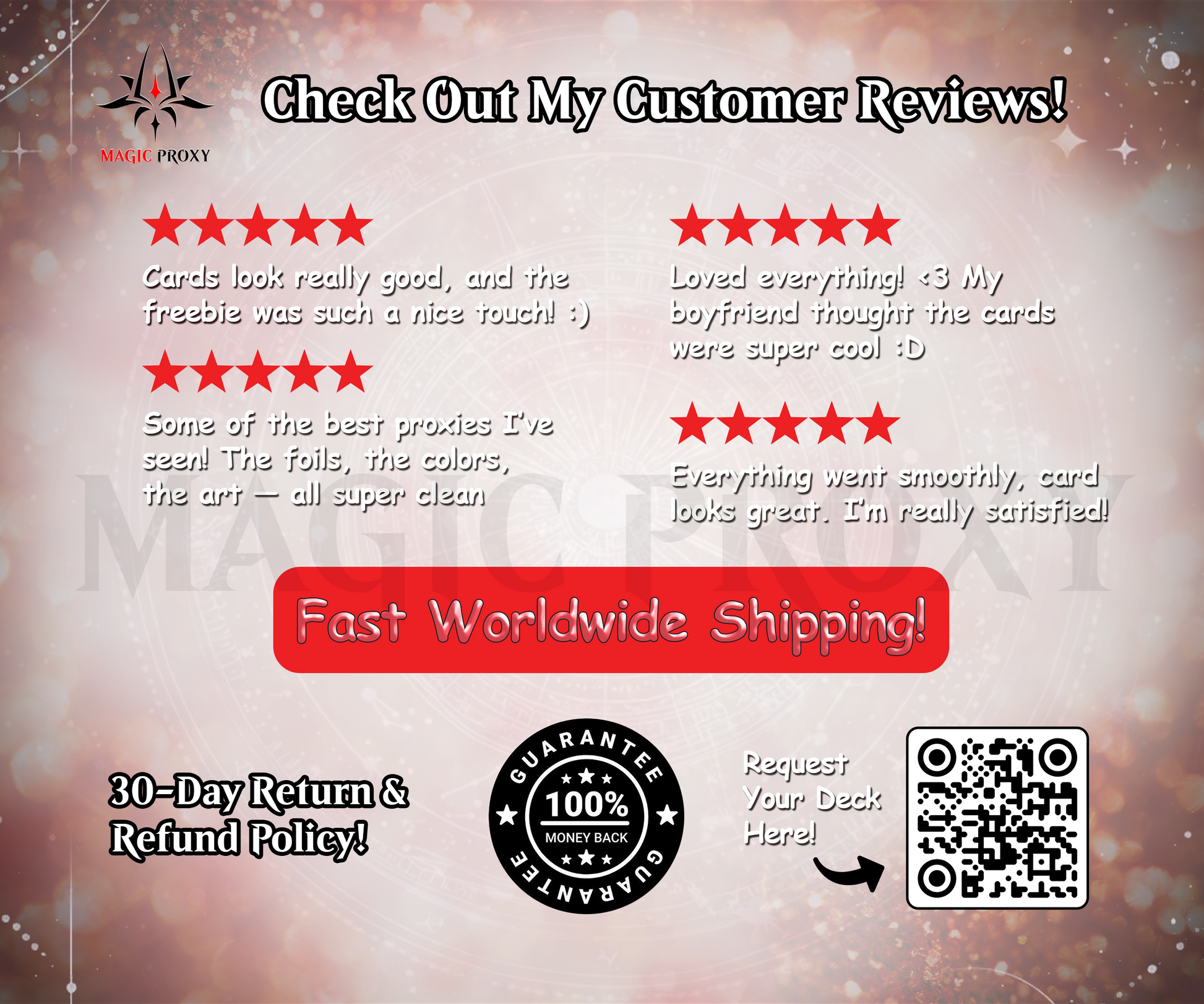 We encourage you to explore the photos and videos on our medias. If you have any questions or need further information, feel free to reach out to us at support@magicproxy.store —we’re here to help ensure you have the perfect deck for your collection or playstyle.