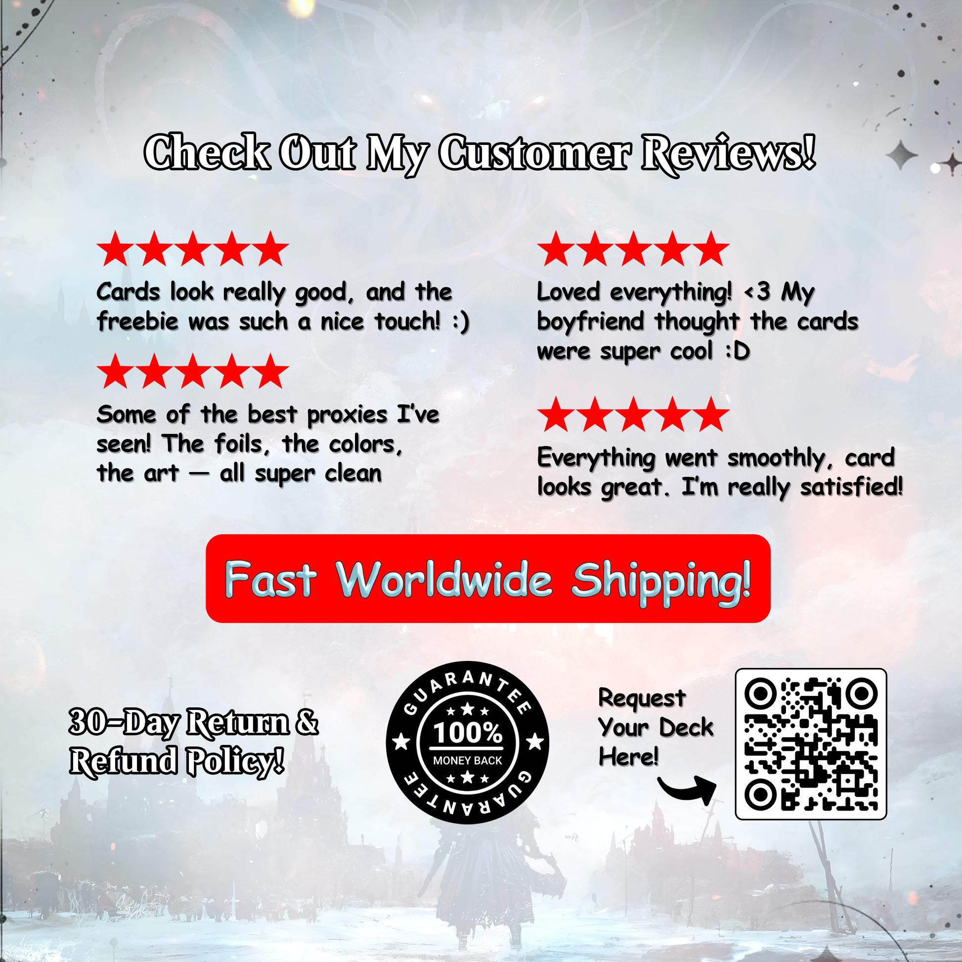 We encourage you to explore the photos and videos on our medias. If you have any questions or need further information, feel free to reach out to us at support@magicproxy.store —we’re here to help ensure you have the perfect deck for your collection or playstyle.