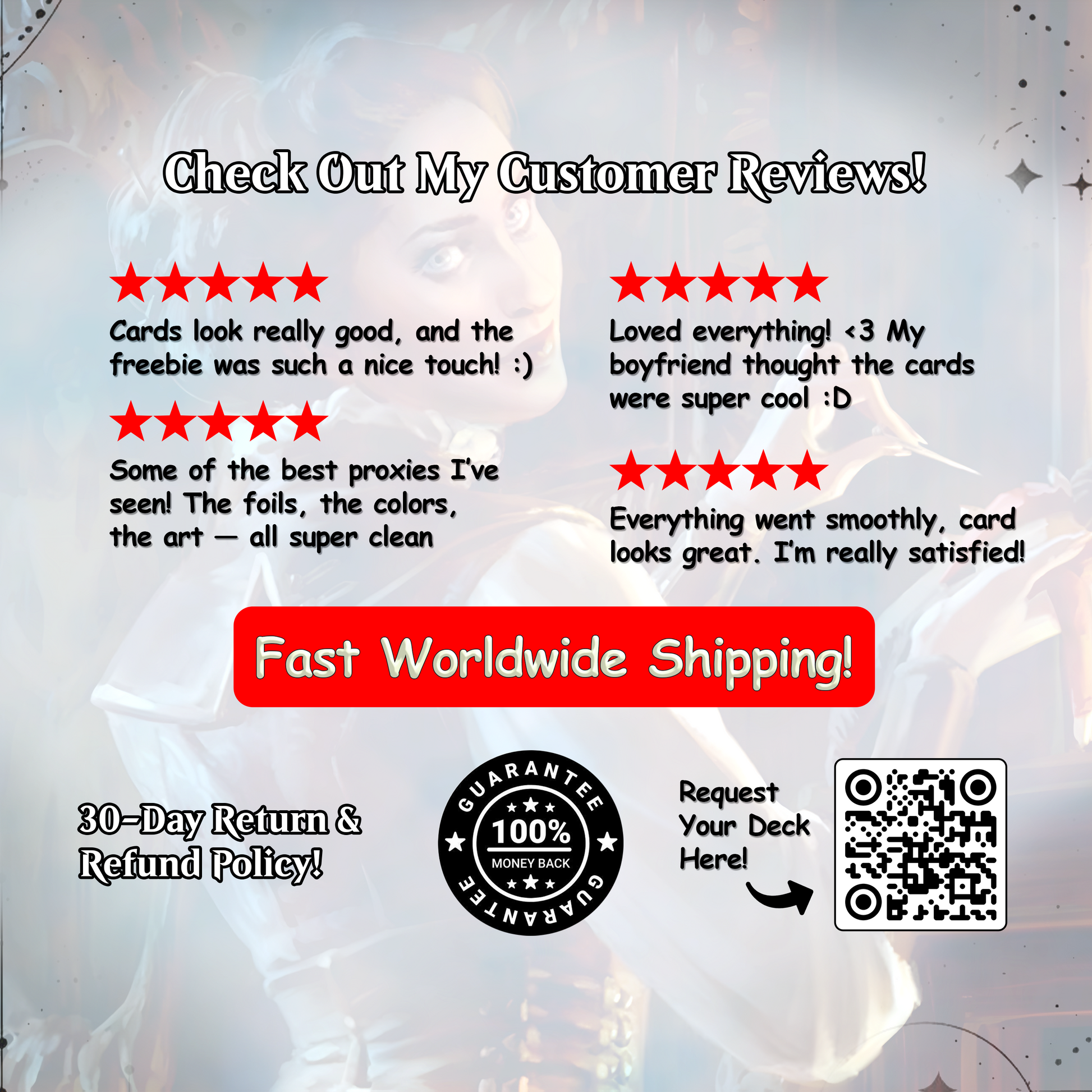 We encourage you to explore the photos and videos on our medias. If you have any questions or need further information, feel free to reach out to us at support@magicproxy.store —we’re here to help ensure you have the perfect deck for your collection or playstyle.
