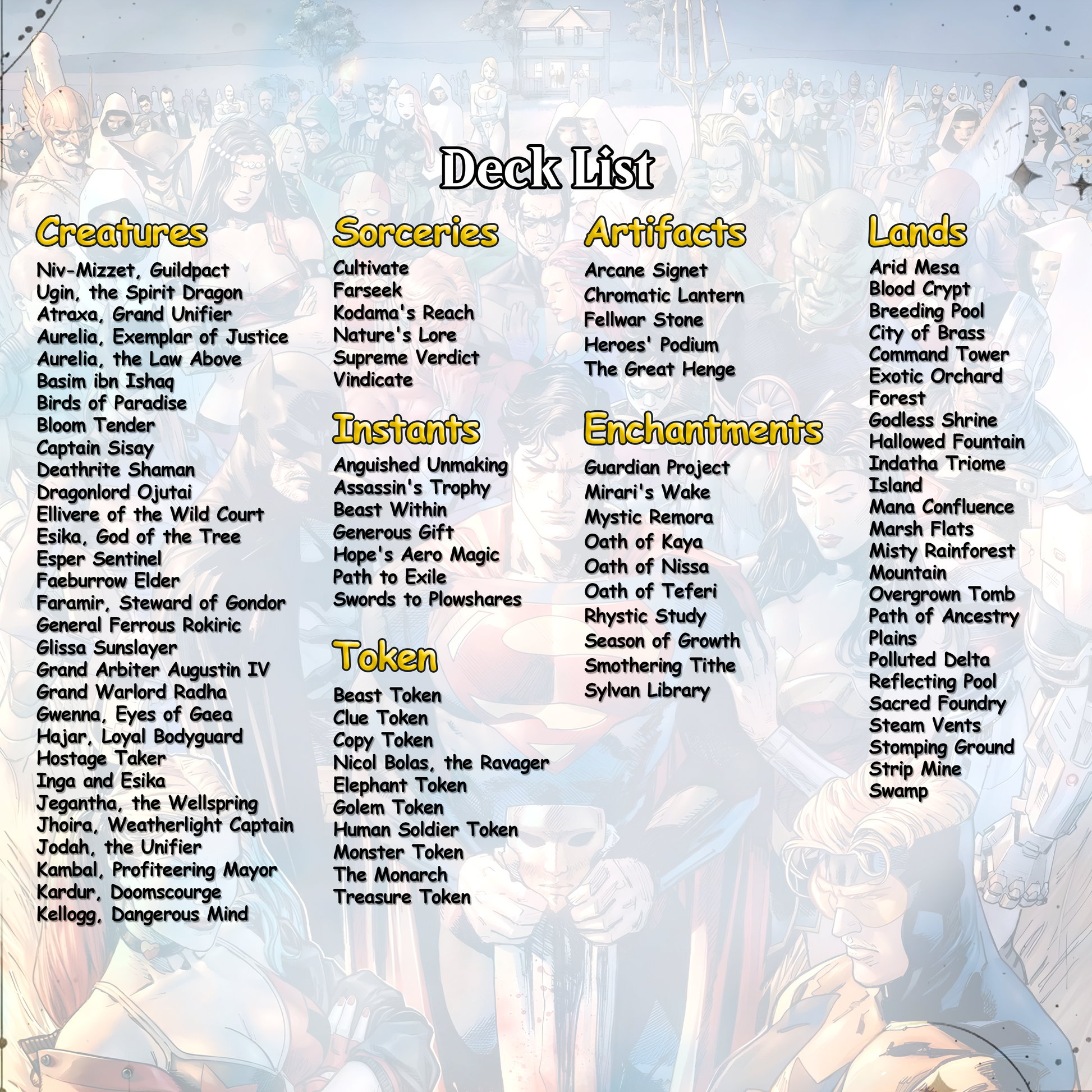 Perfect for casual Commander EDH games, this deck lets you play as S.u.p.e.r.m.a.n commanding a heroic lineup. Use control, tempo, and power plays to outsmart opponents while channeling the D.C Universe’s greatest icon.