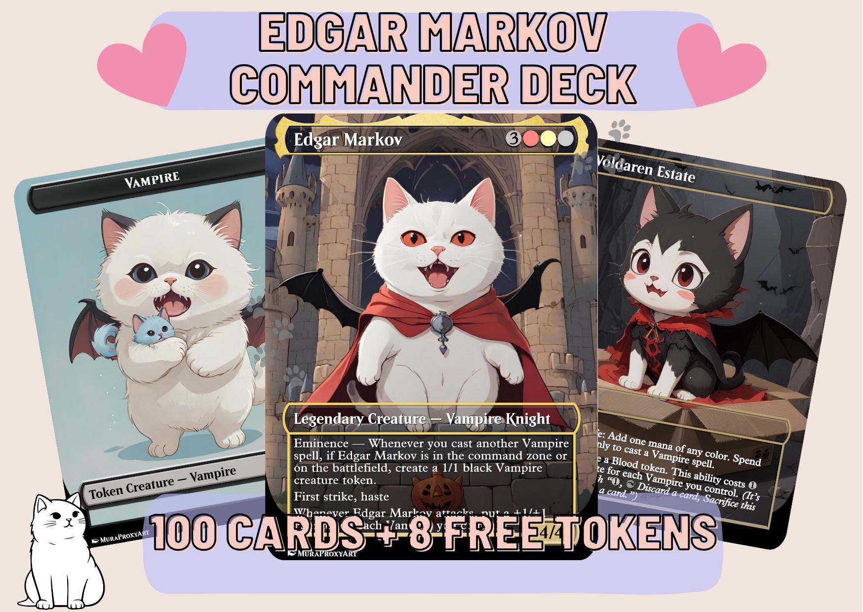 🦇 Edgar Markov Vampire Tribal Proxy Commander Deck – 100 Cards + 8 Tokens | Cute Custom Full Art | MuraProxyArt