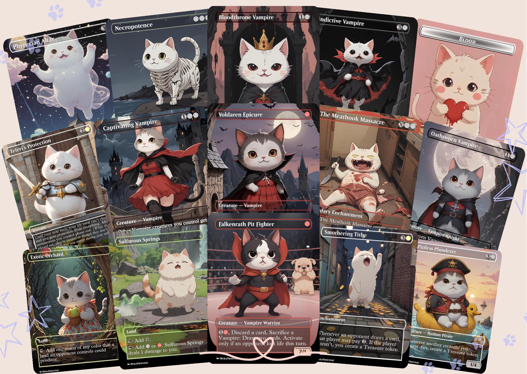 proxie magic cards, custom full art, vampire tribal, mtg anime art, edh precon deck, mtg cute deck, mtg gift, kawaii mtg, spooky commander, prebuilt mtg, mtg proxy deck