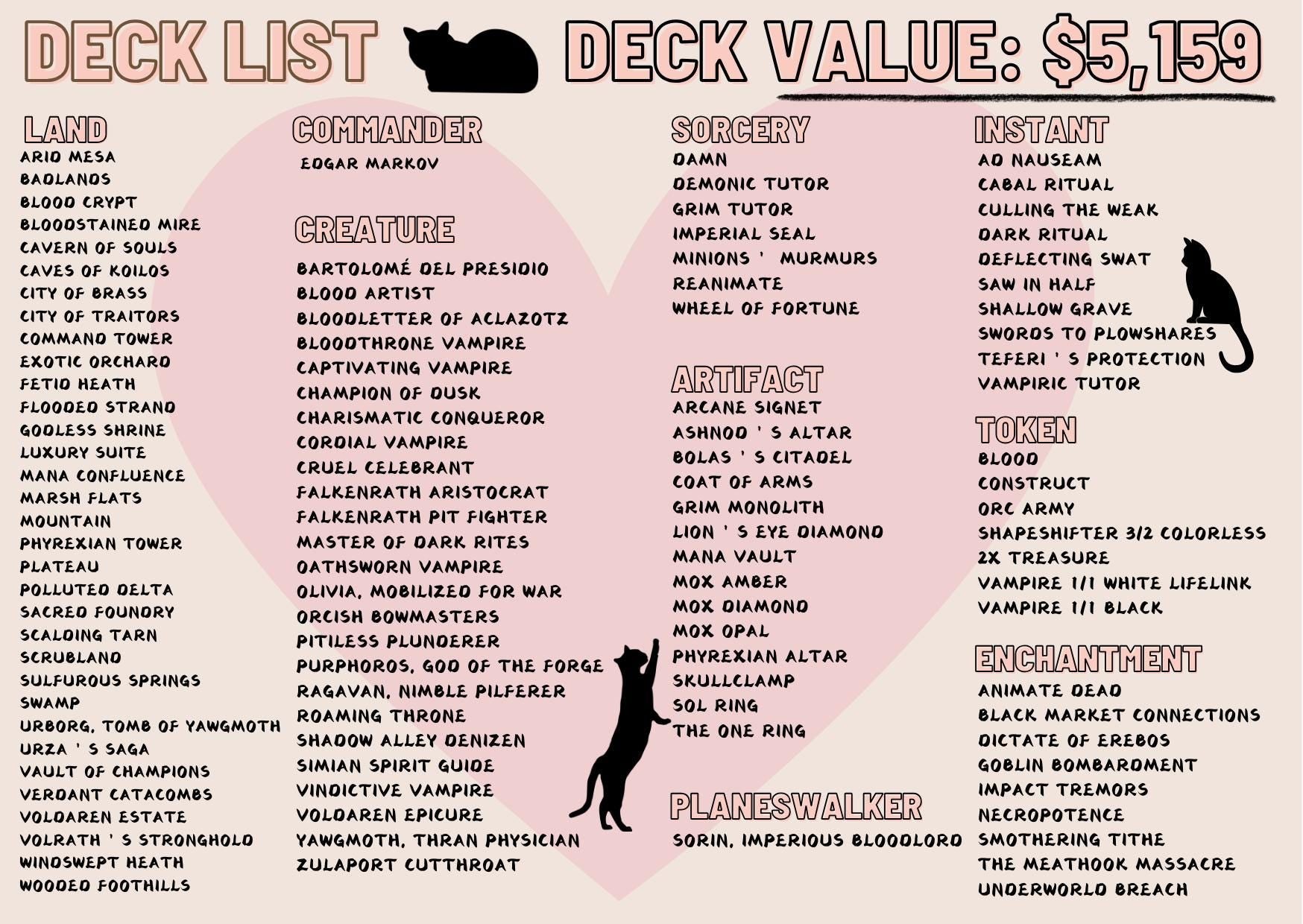 Love vampires and spooky cute art? This deck brings Edgar Markov to life with an adorable twist — vampire kittens! Whether you’re summoning tiny fanged furballs or swinging with bloodthirsty creatures, this deck makes EDH fun, flavorful, and full of fang.