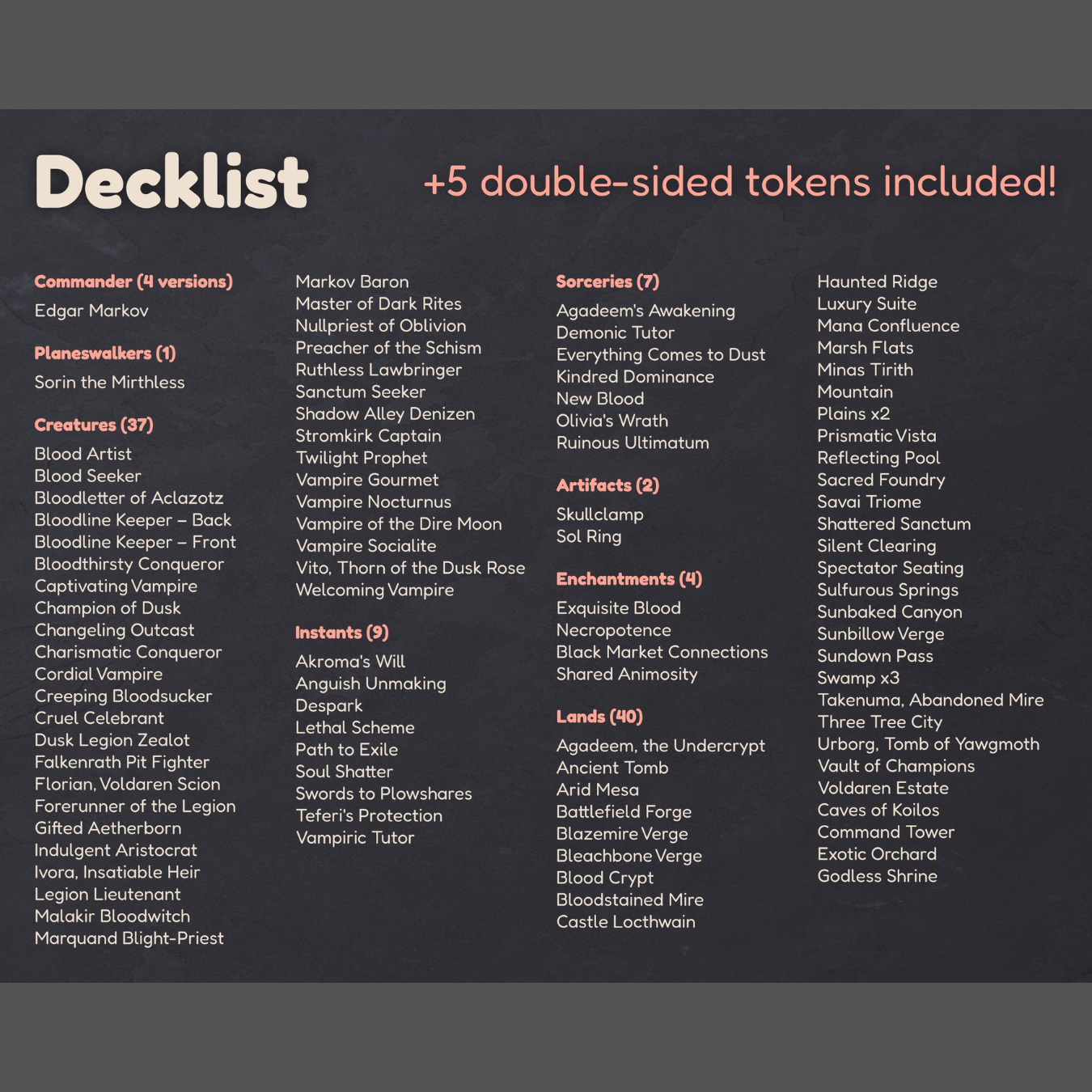 Edgar Markov Vampires - Full TCG Proxy Commander EDH Deck - 108 cards - Tokens included - Waifu Anime Girls