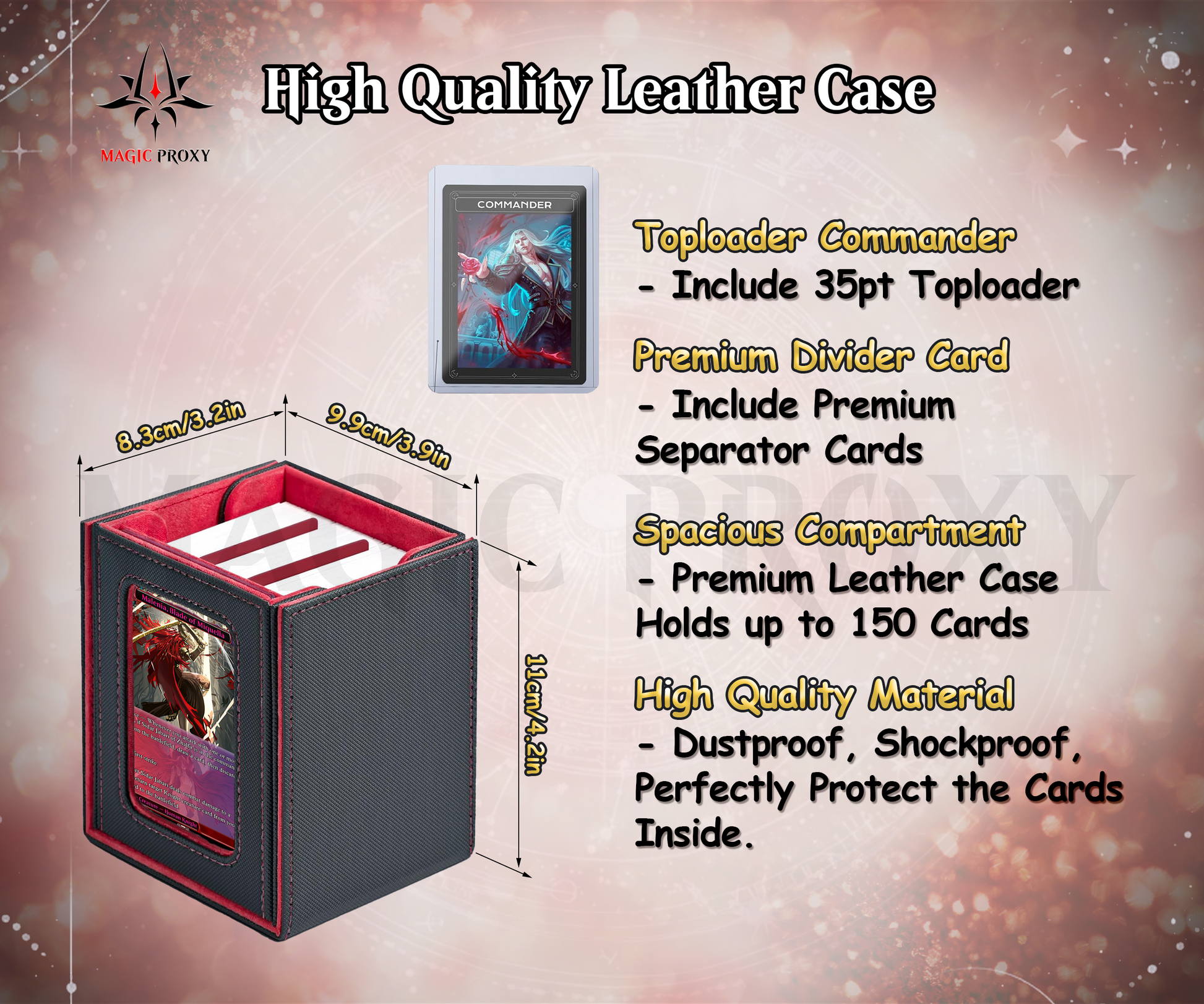 Our custom Commander decks are made in the standard card size and has rounded corners, ensuring compatibility with your collection and accessories. Measuring 63mm x 88mm (2.5” x 3.5”), these cards are designed to fit seamlessly into sleeves, deck boxes, and shuffling routines.🌟
