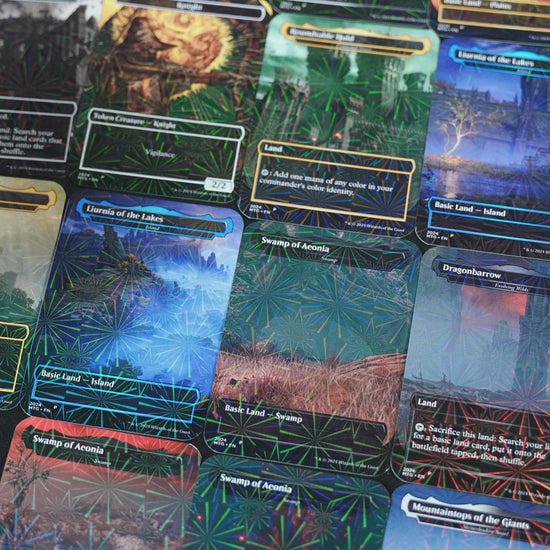 Our custom decks offer a truly unique experience, featuring fully frames, customized artwork, mana symbols, etc... designed to enhance the theme and style of each deck. Every card is meticulously crafted to provide a one-of-a-kind aesthetic while maintaining the quality you expect for seamless gameplay.