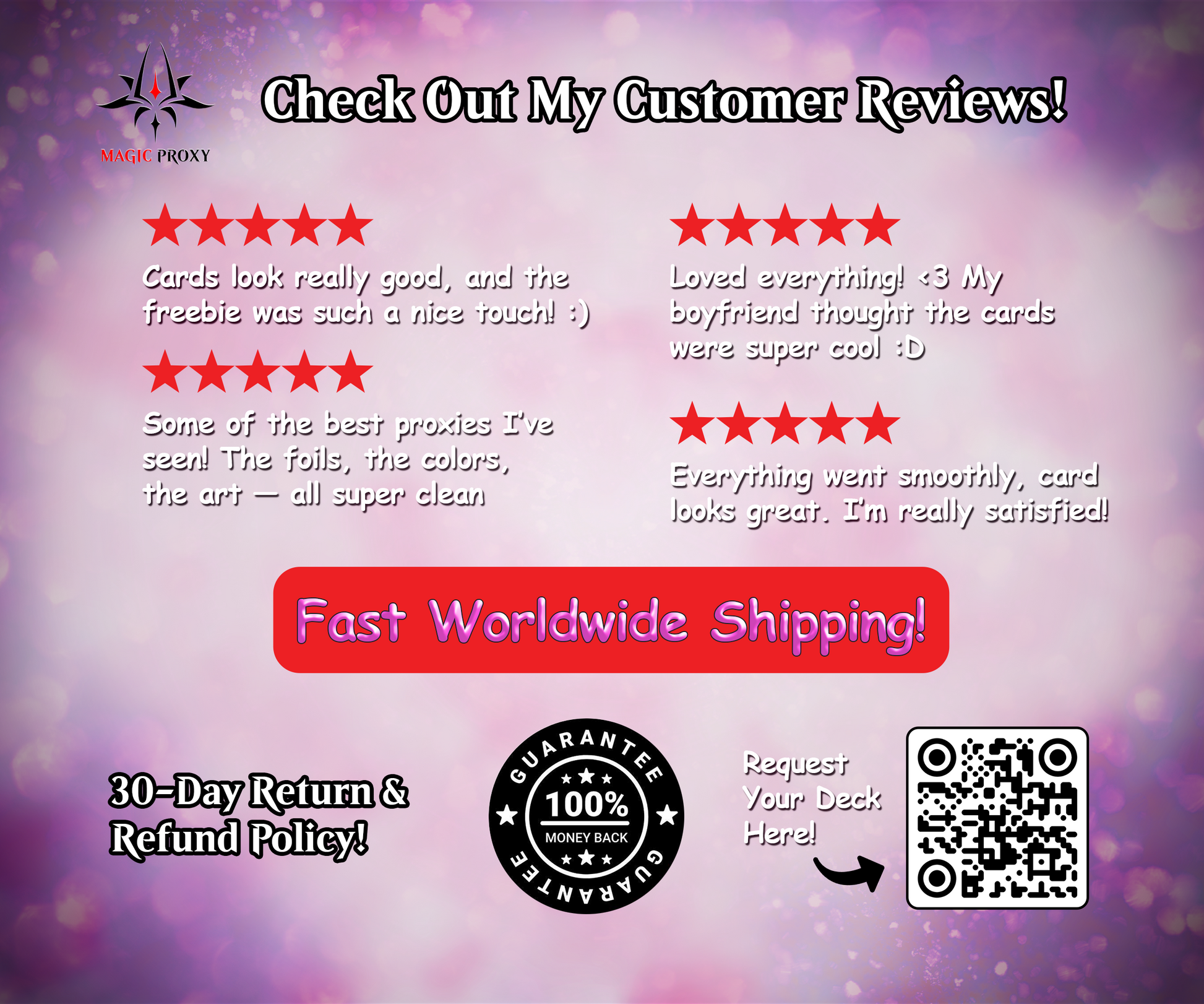 We encourage you to explore the photos and videos on our medias. If you have any questions or need further information, feel free to reach out to us at support@magicproxy.store —we’re here to help ensure you have the perfect deck for your collection or playstyle.