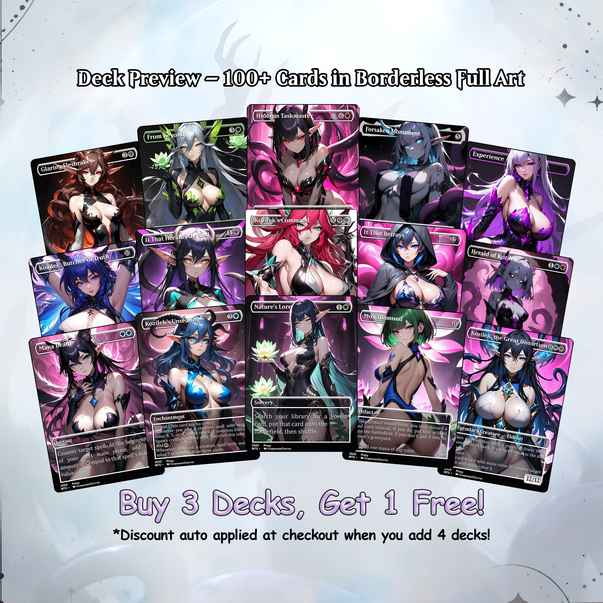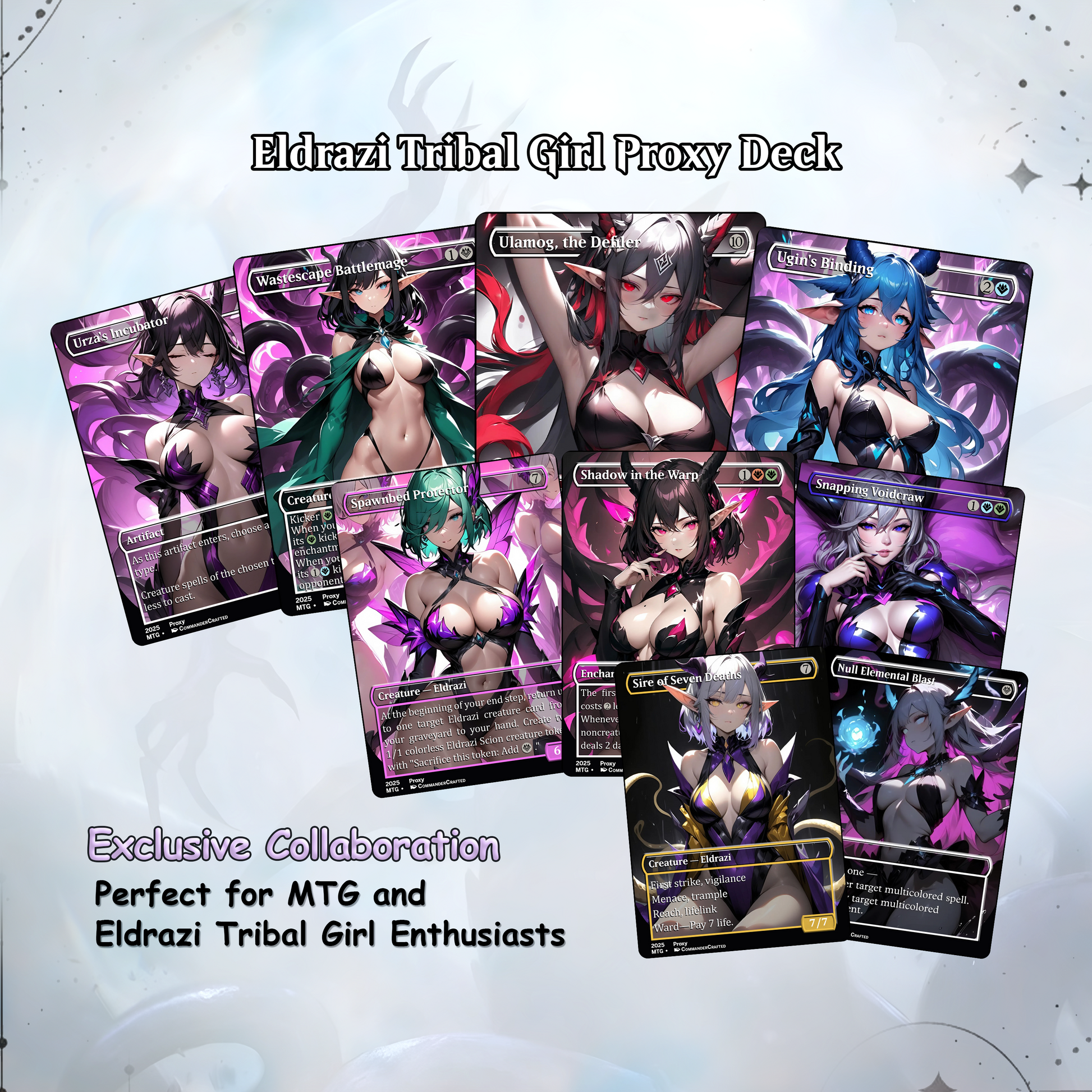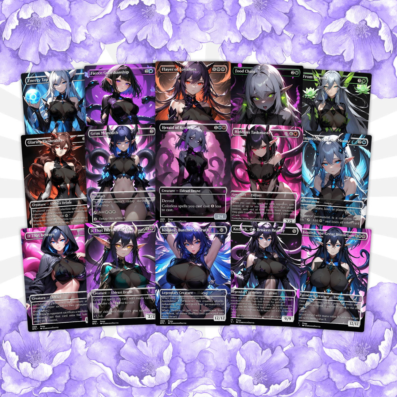 ✔ Full-art, borderless proxy cards featuring anime-style Eldrazi