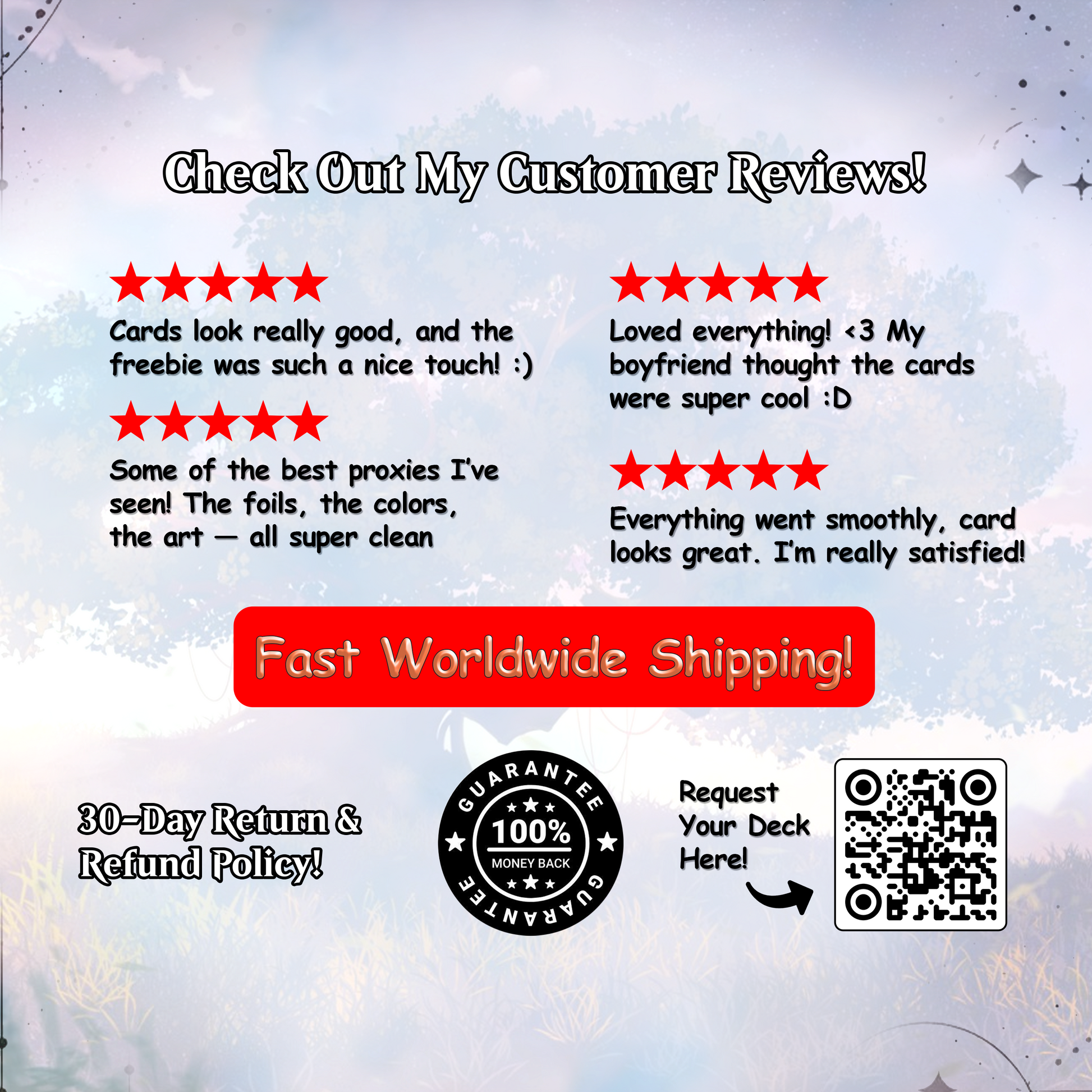We encourage you to explore the photos and videos on our medias. If you have any questions or need further information, feel free to reach out to us at support@magicproxy.store —we’re here to help ensure you have the perfect deck for your collection or playstyle.