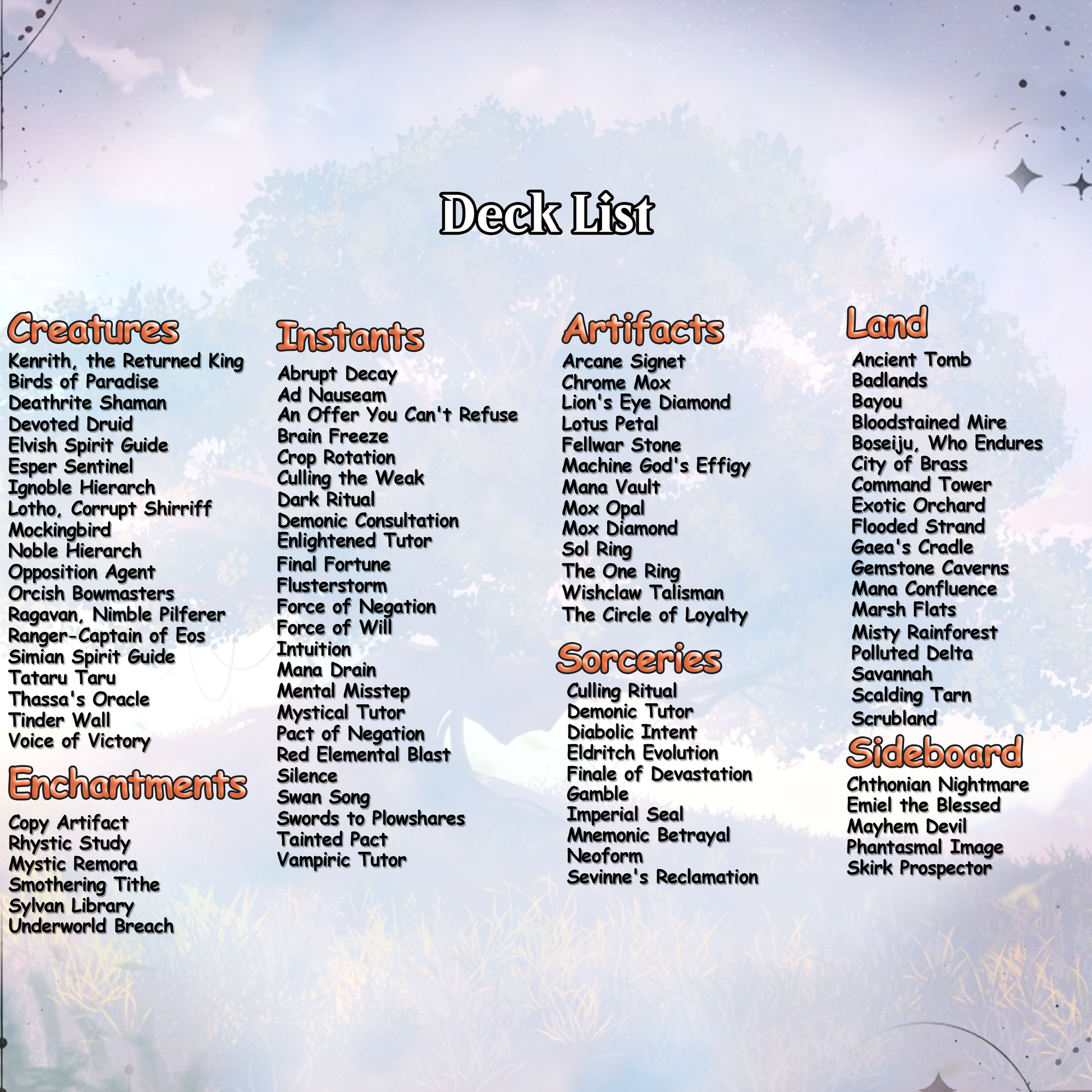 Journey across the elemental lands of Teyvat in this stunning Genshin Impact-inspired Commander deck, led by Kenrith, The Evolution. Every card channels iconic Genshin characters with beautifully detailed art and synergistic gameplay. Built for fans who love both anime aesthetics and powerful EDH strategy.
