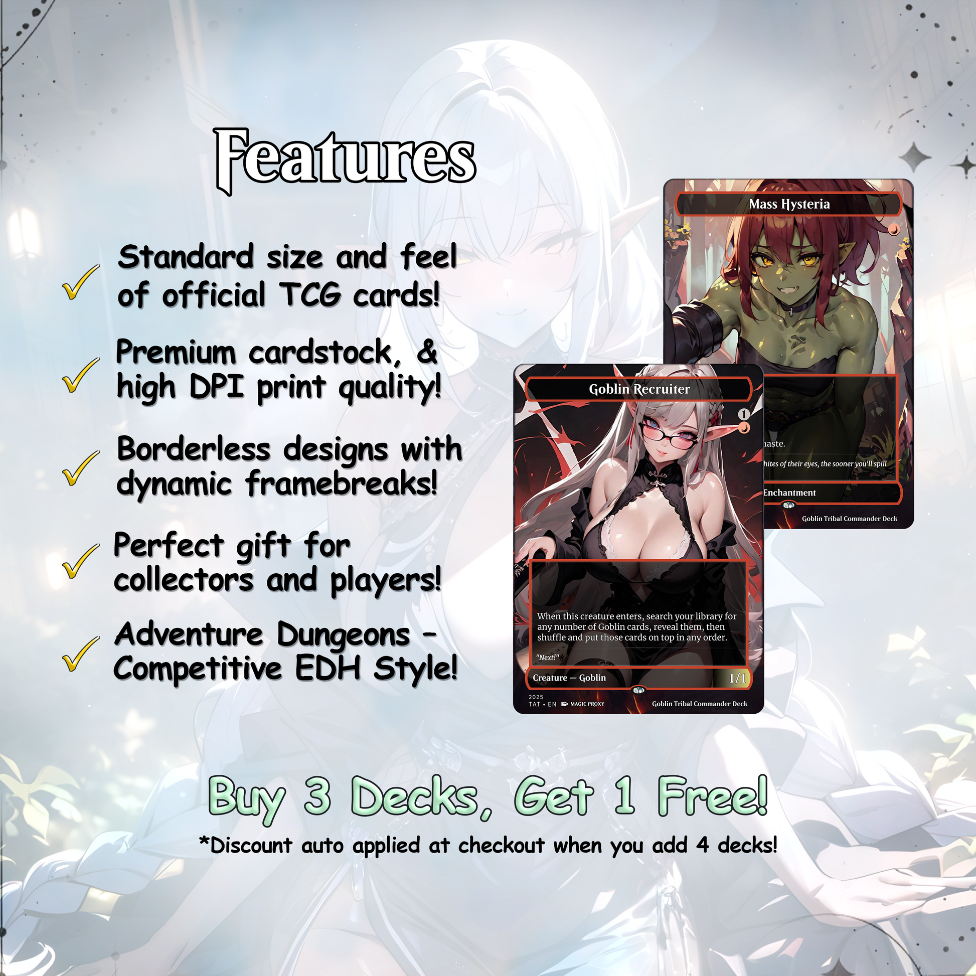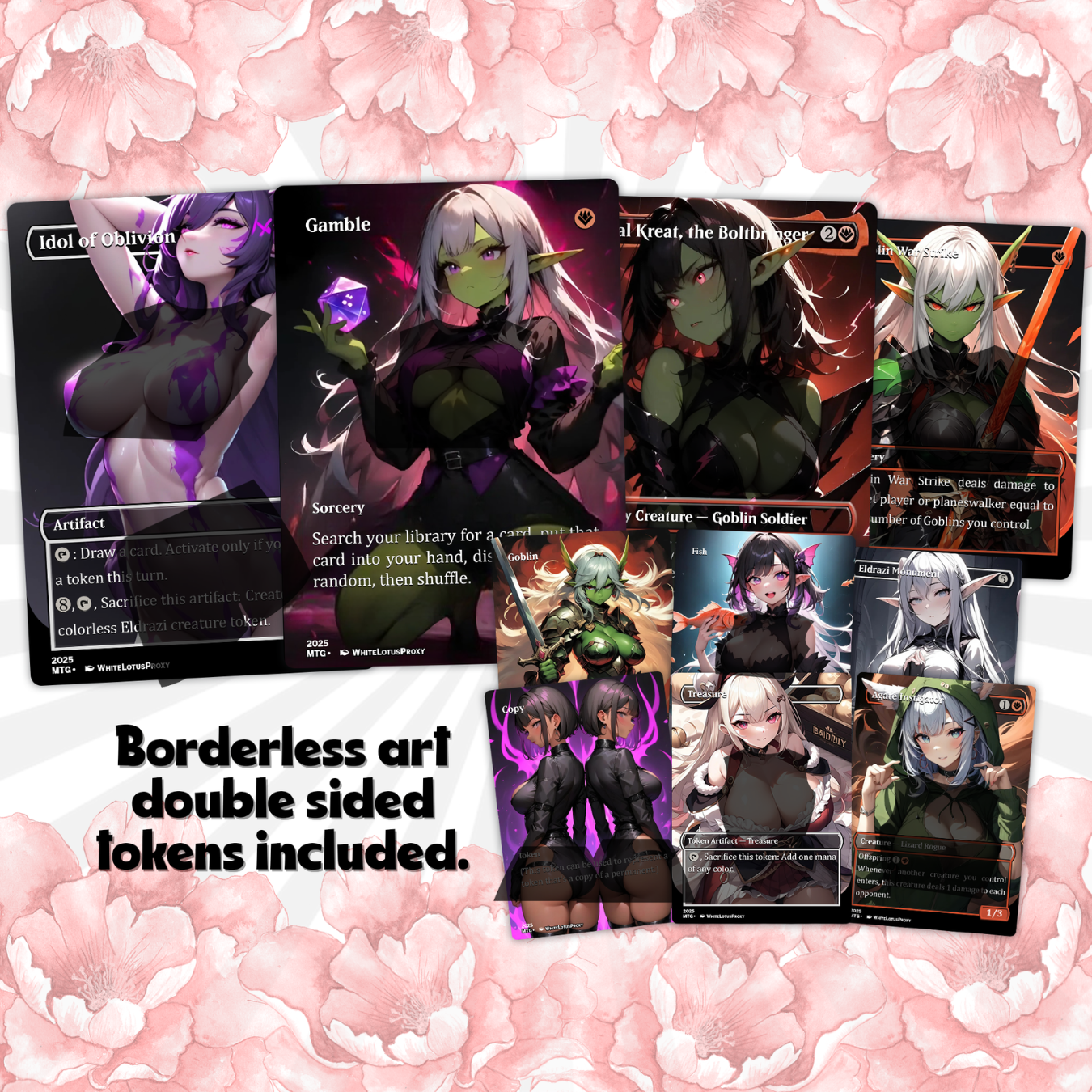 ✔ 4 Full-Art Waifu Versions of Krenko – Goblin boss reimagined with flair