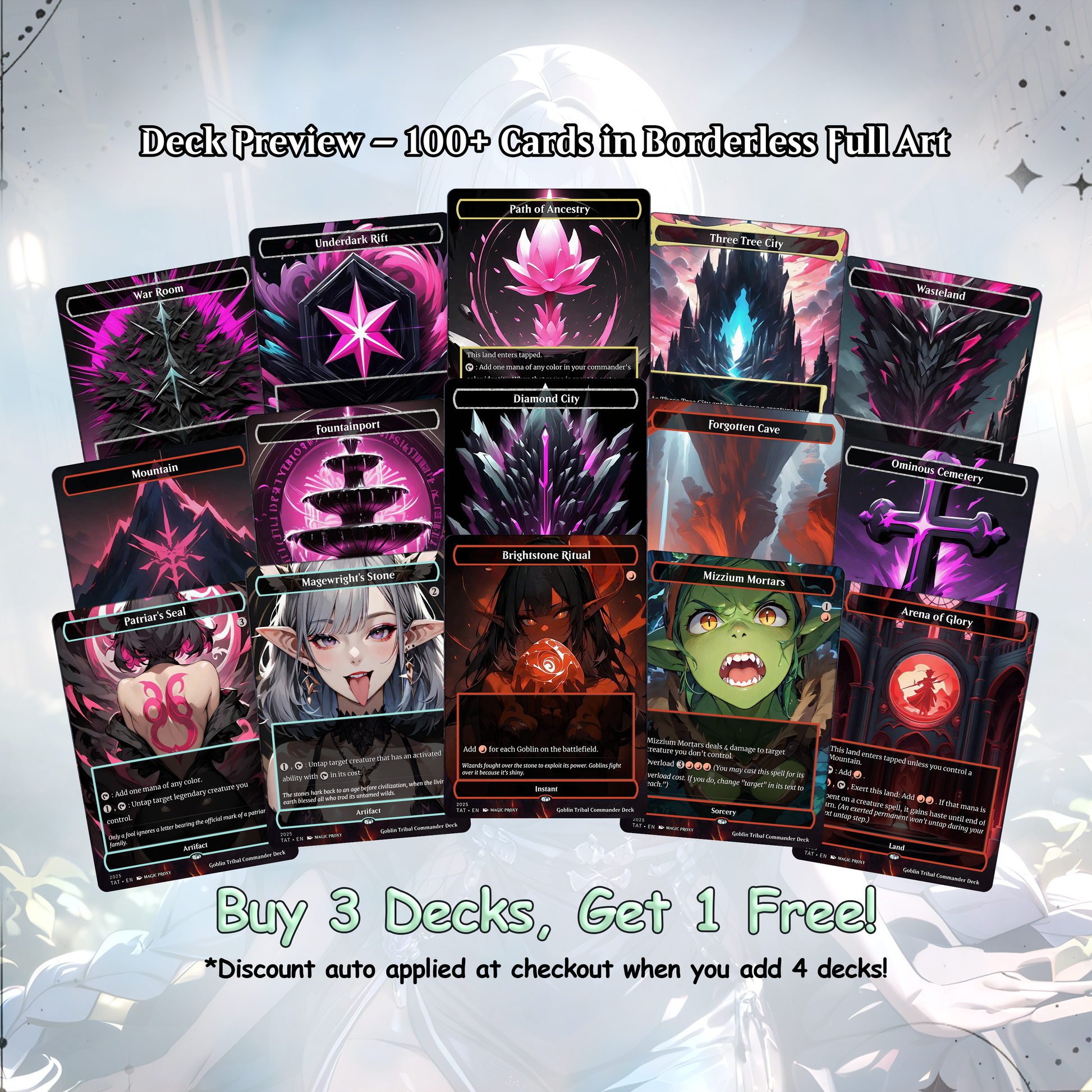 ✔ Full-art borderless anime-style proxy cards