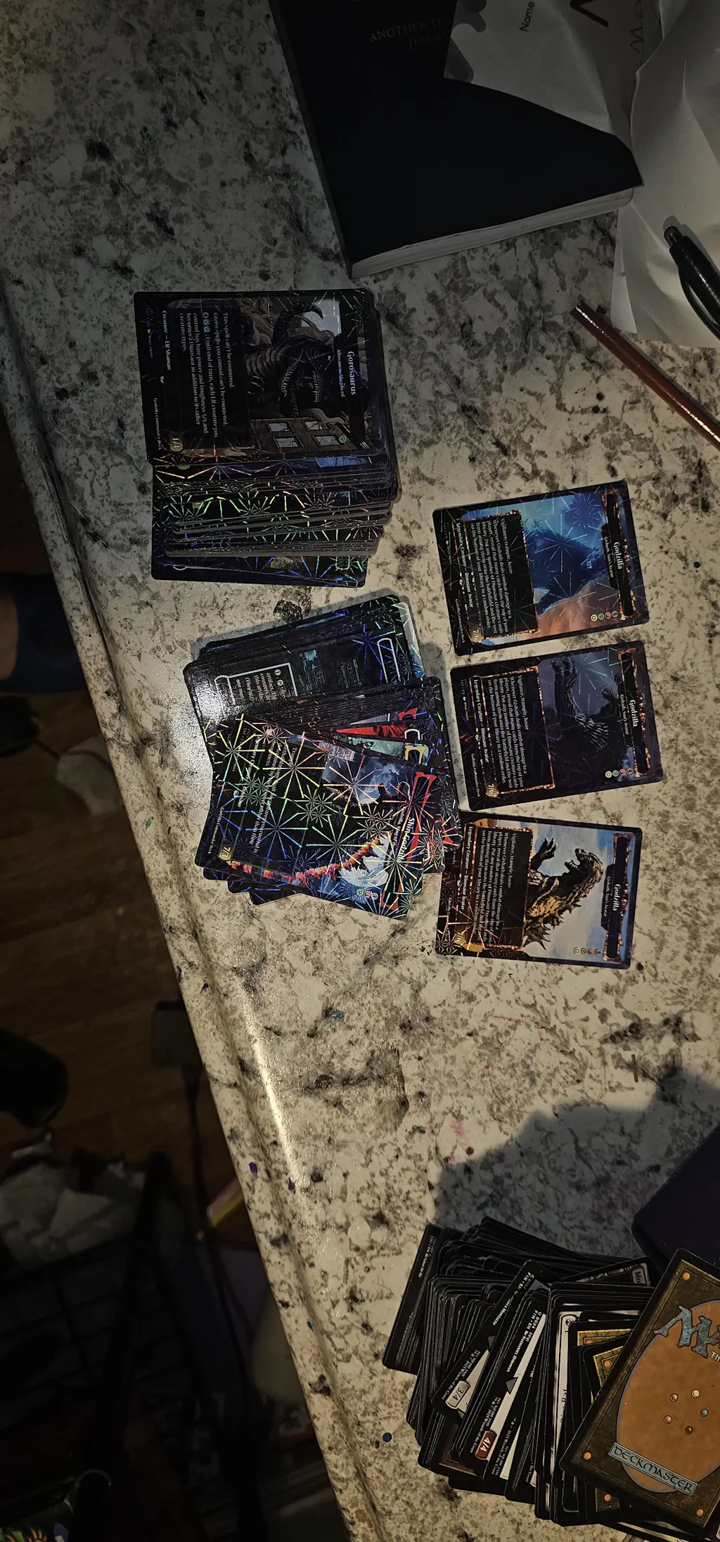 Our custom decks offer a truly unique experience, featuring fully frames, customized artwork, mana symbols, etc... designed to enhance the theme and style of each deck. Every card is meticulously crafted to provide a one-of-a-kind aesthetic while maintaining the quality you expect for seamless gameplay.