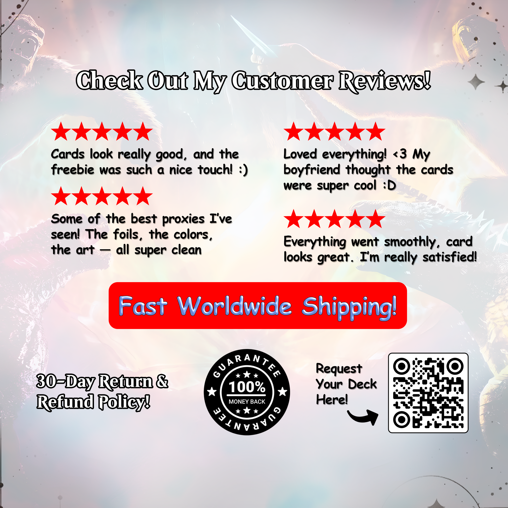 We encourage you to explore the photos and videos on our medias. If you have any questions or need further information, feel free to reach out to us at support@magicproxy.store —we’re here to help ensure you have the perfect deck for your collection or playstyle.
