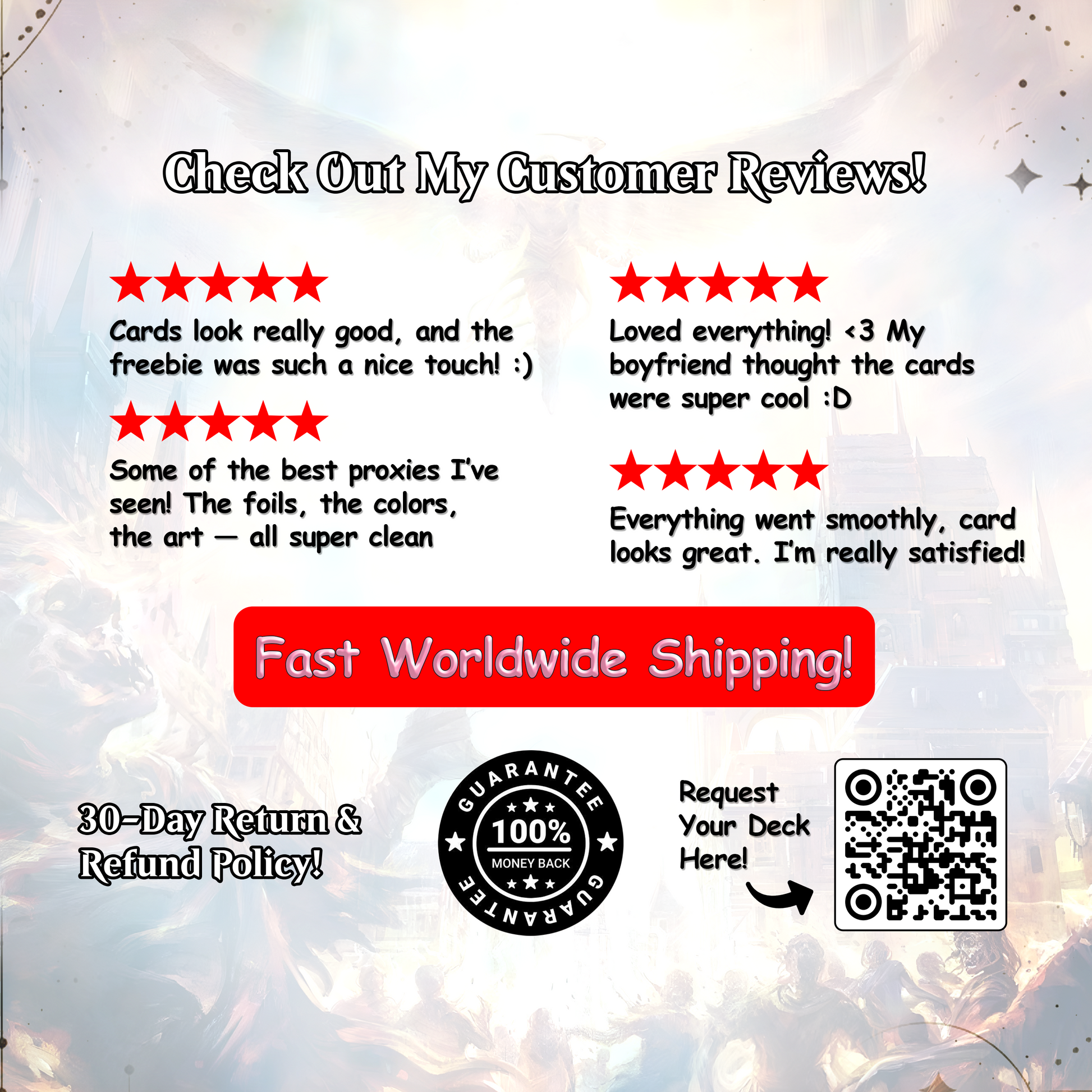 We encourage you to explore the photos and videos on our medias. If you have any questions or need further information, feel free to reach out to us at support@magicproxy.store —we’re here to help ensure you have the perfect deck for your collection or playstyle.