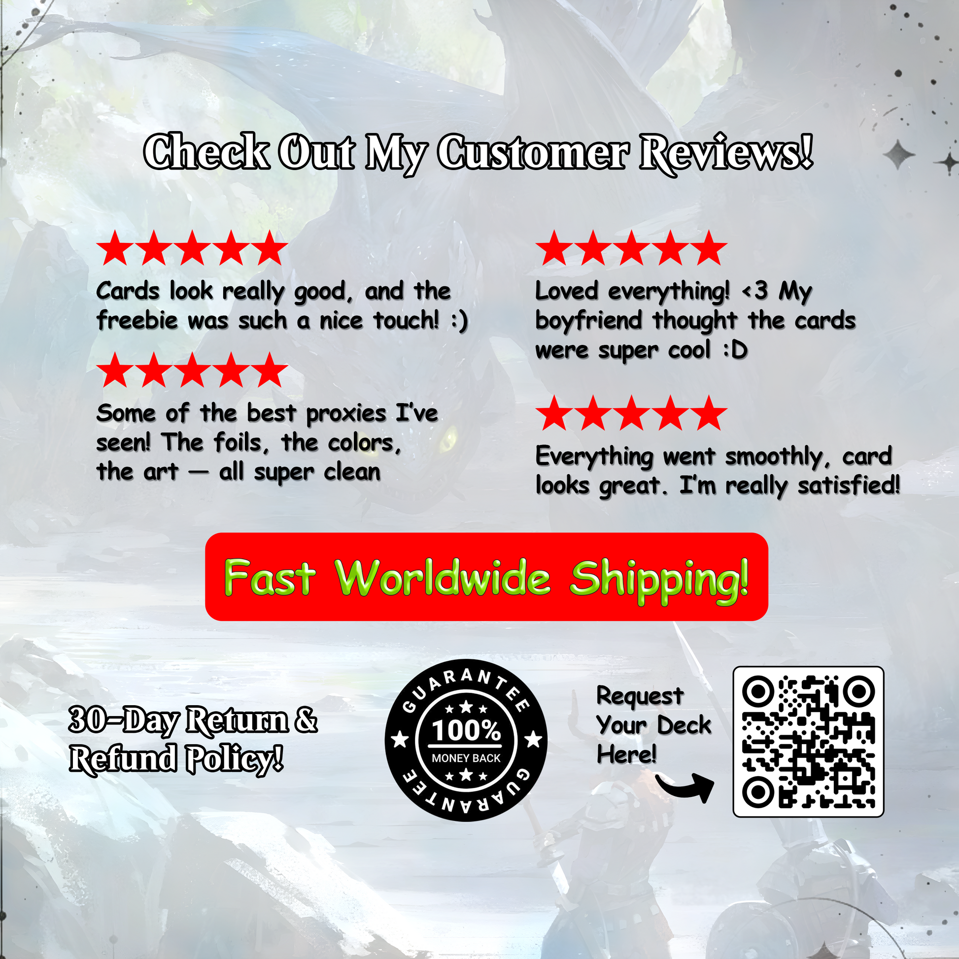We encourage you to explore the photos and videos on our medias. If you have any questions or need further information, feel free to reach out to us at support@magicproxy.store —we’re here to help ensure you have the perfect deck for your collection or playstyle.