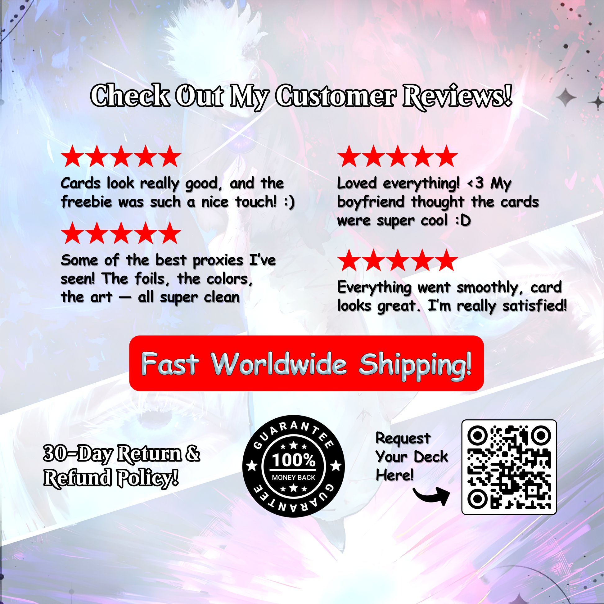 ✔ Custom full-art anime designs inspired by iconic Jujutsu Kaisen! decks – made to wow