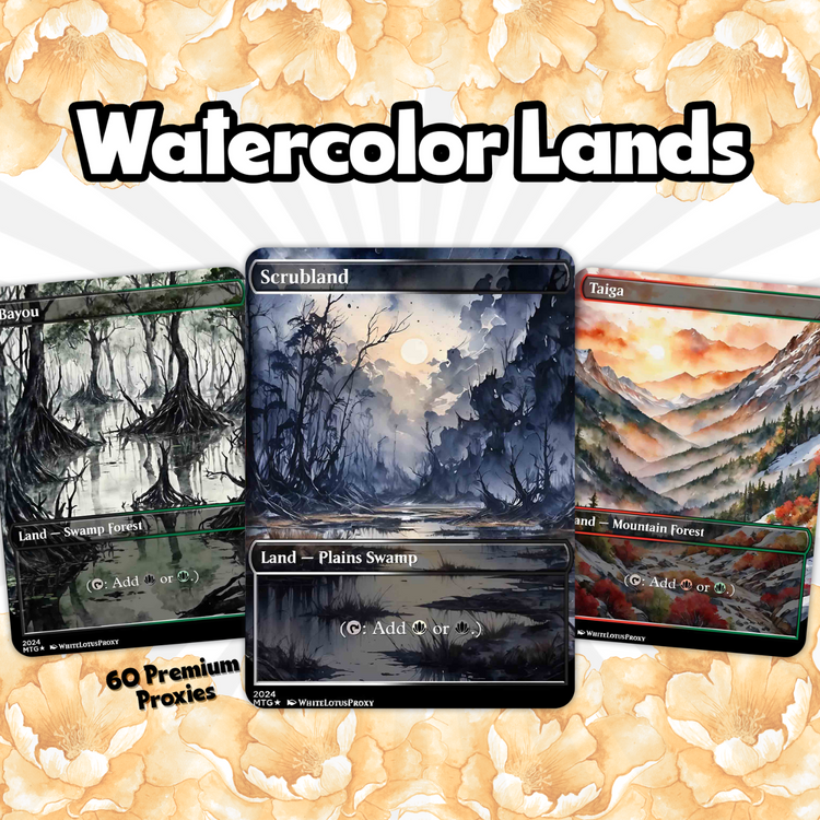 Elevate your Commander deck with this Anime Watercolour Mega Land Pack — a curated set of 50+ beautifully illustrated proxy lands, designed for EDH and cEDH players who love vibrant, artistic flair. Each land features borderless, watercolor-style art inspired by anime aesthetics, perfect for bringing your battlefield to life.