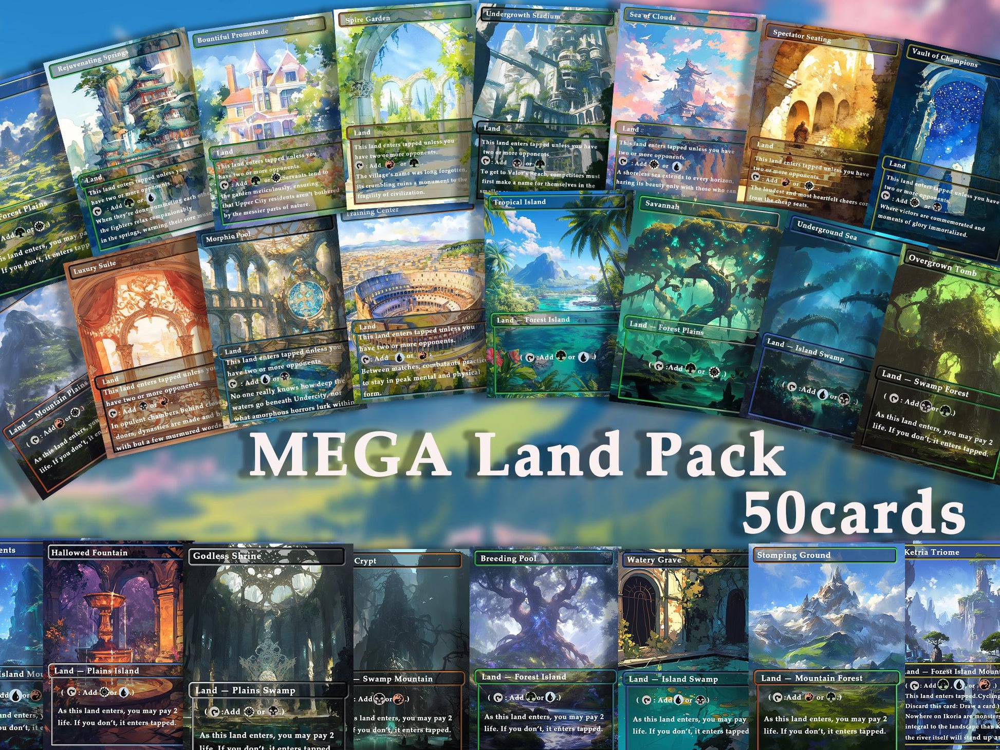 50+ unique full-art land cards (no duplicates)