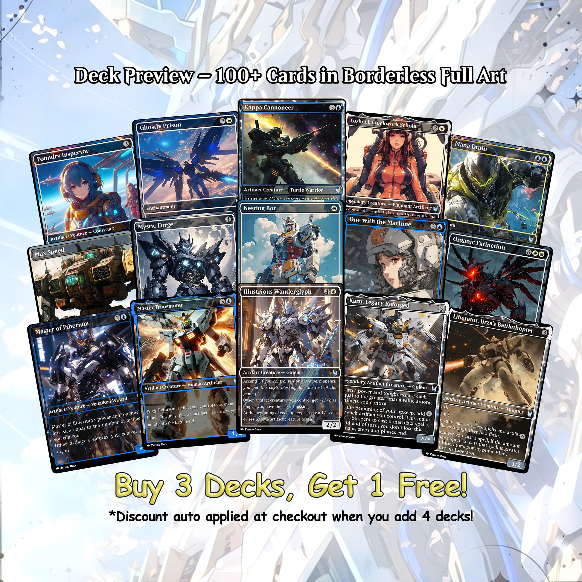 This deck functions as a mechanized engine of value and replication. Mendicant Core thrives on artifact synergy — each cast adds fuel, speed, and power. Once your “max speed” is reached, the board snowballs into a relentless swarm of constructs, tokens, and mechanical dominance.