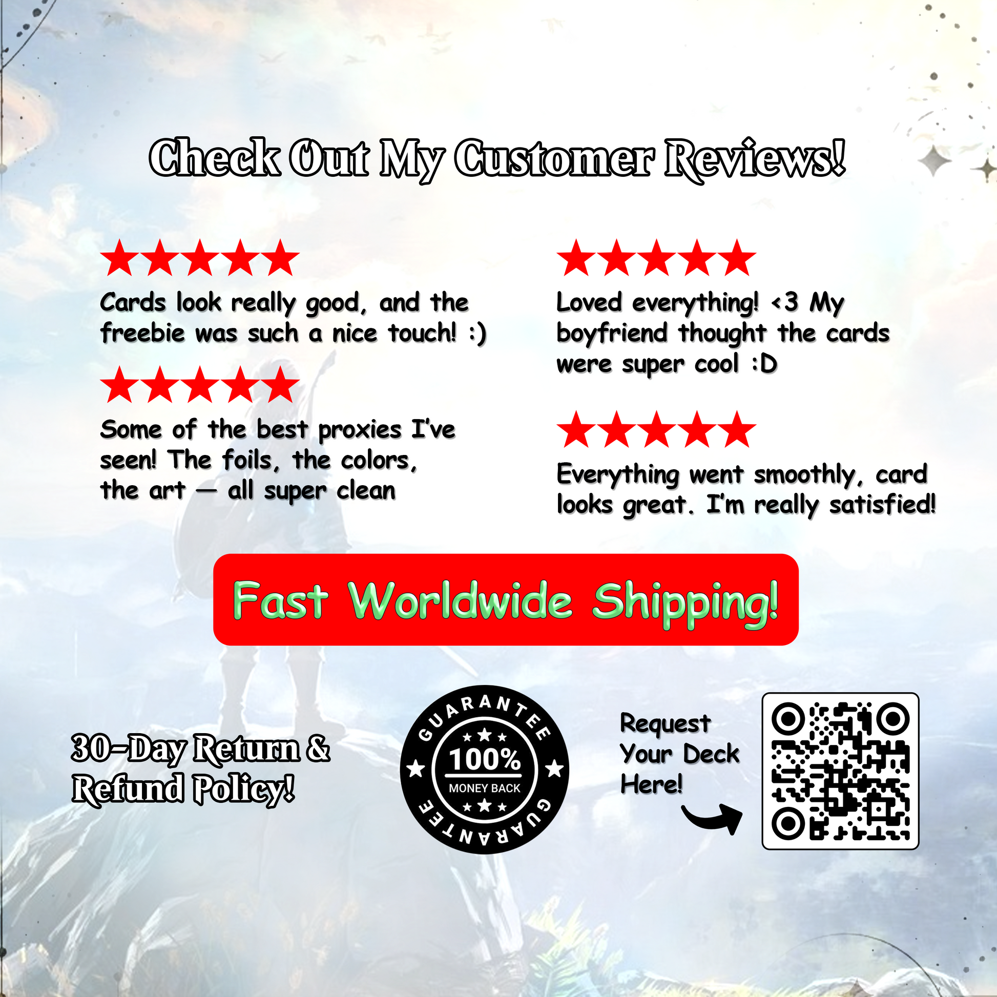 ✔ Custom full-art anime designs inspired by iconic Saviors of Hyrule! decks – made to wow