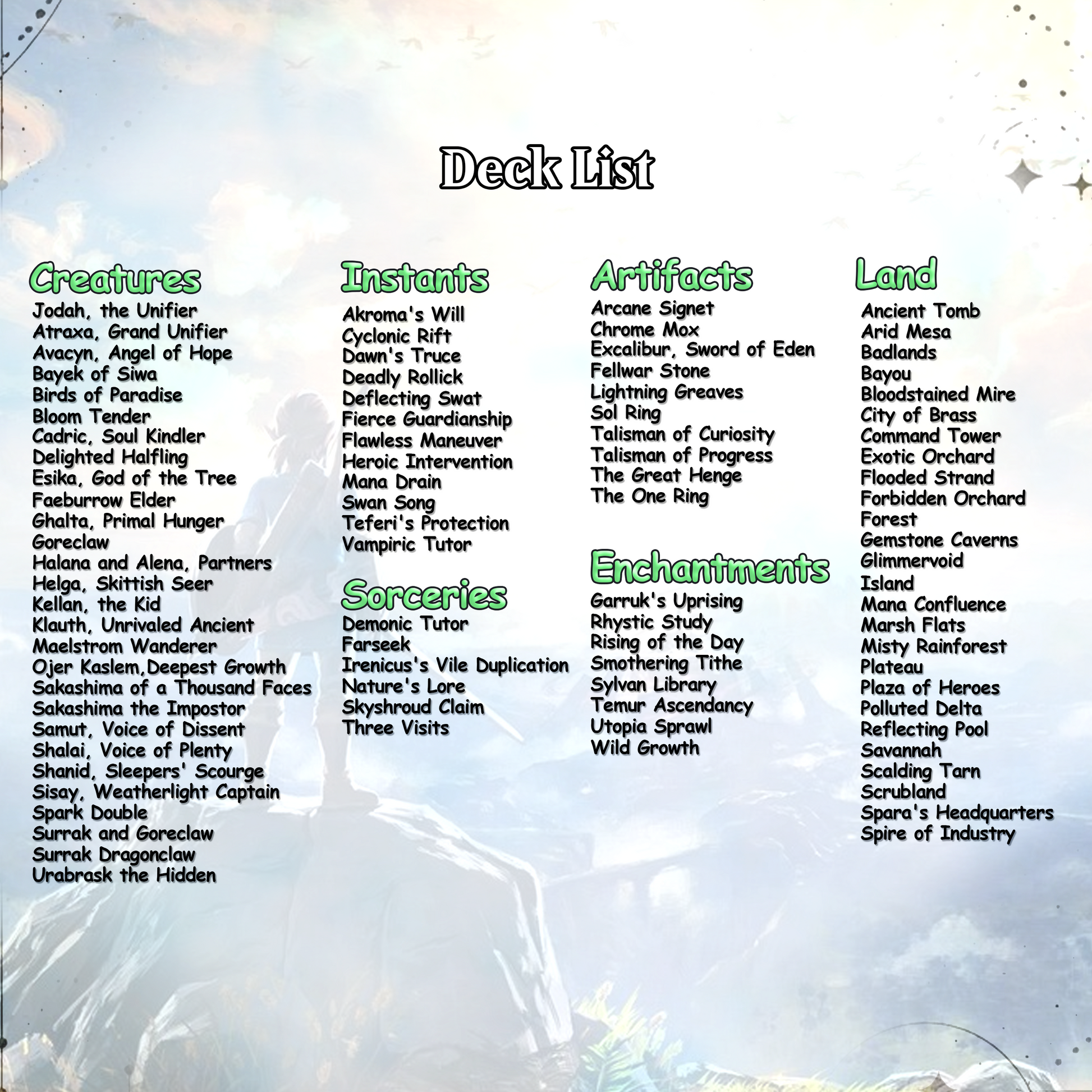 This is a fan-made proxy Commander deck. It is not affiliated with Wizards of the Coast or any official TCG brand.