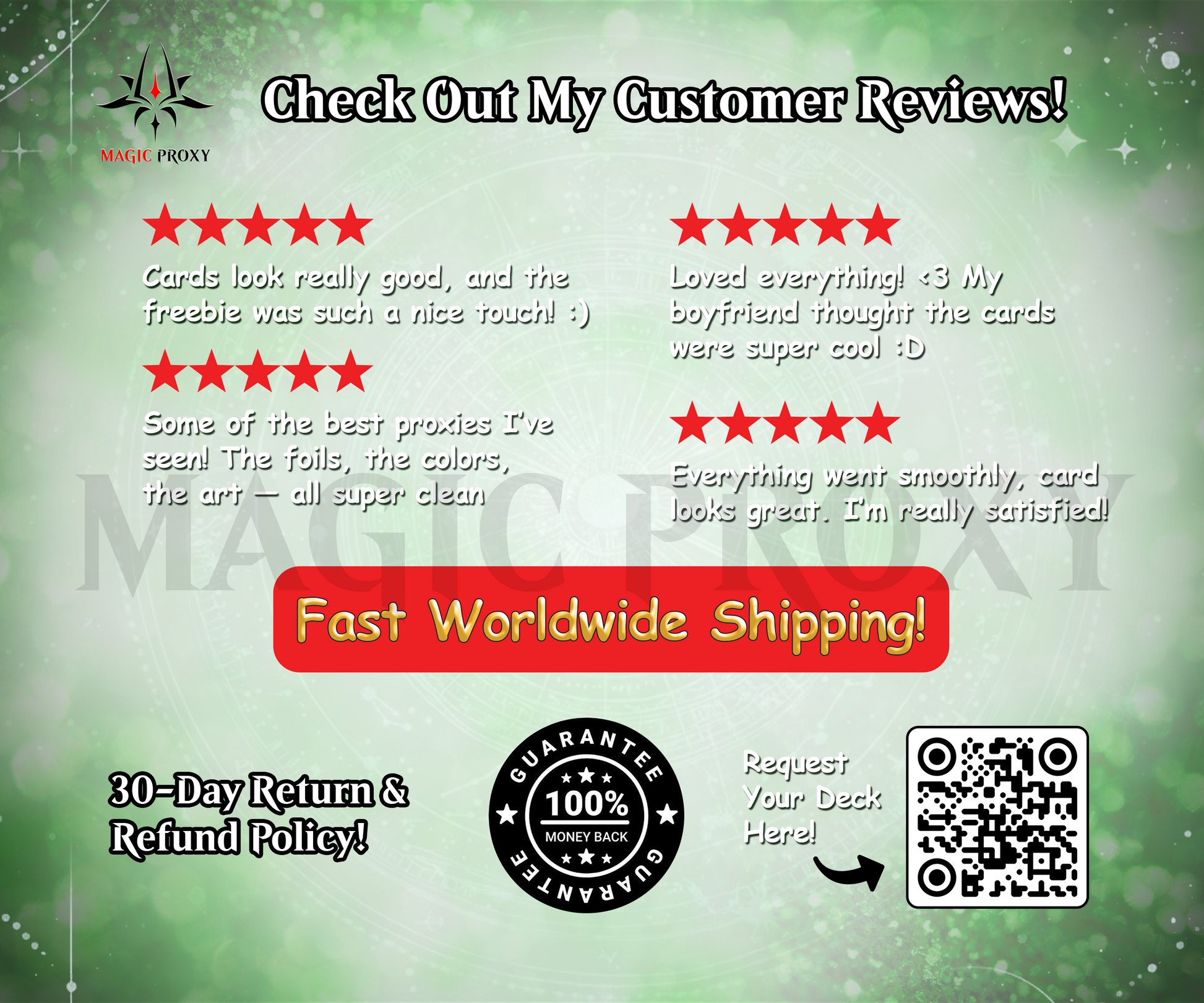We encourage you to explore the photos and videos on our medias. If you have any questions or need further information, feel free to reach out to us at support@magicproxy.store —we’re here to help ensure you have the perfect deck for your collection or playstyle.