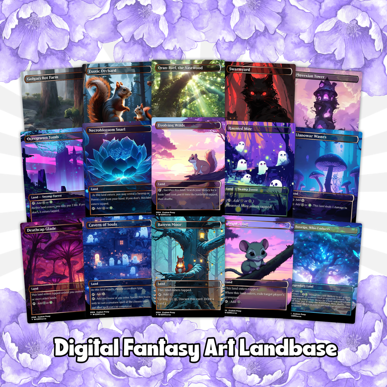 Our custom decks offer a truly unique experience, featuring fully frames, customized artwork, mana symbols, etc... designed to enhance the theme and style of each deck. Every card is meticulously crafted to provide a one-of-a-kind aesthetic while maintaining the quality you expect for seamless gameplay.