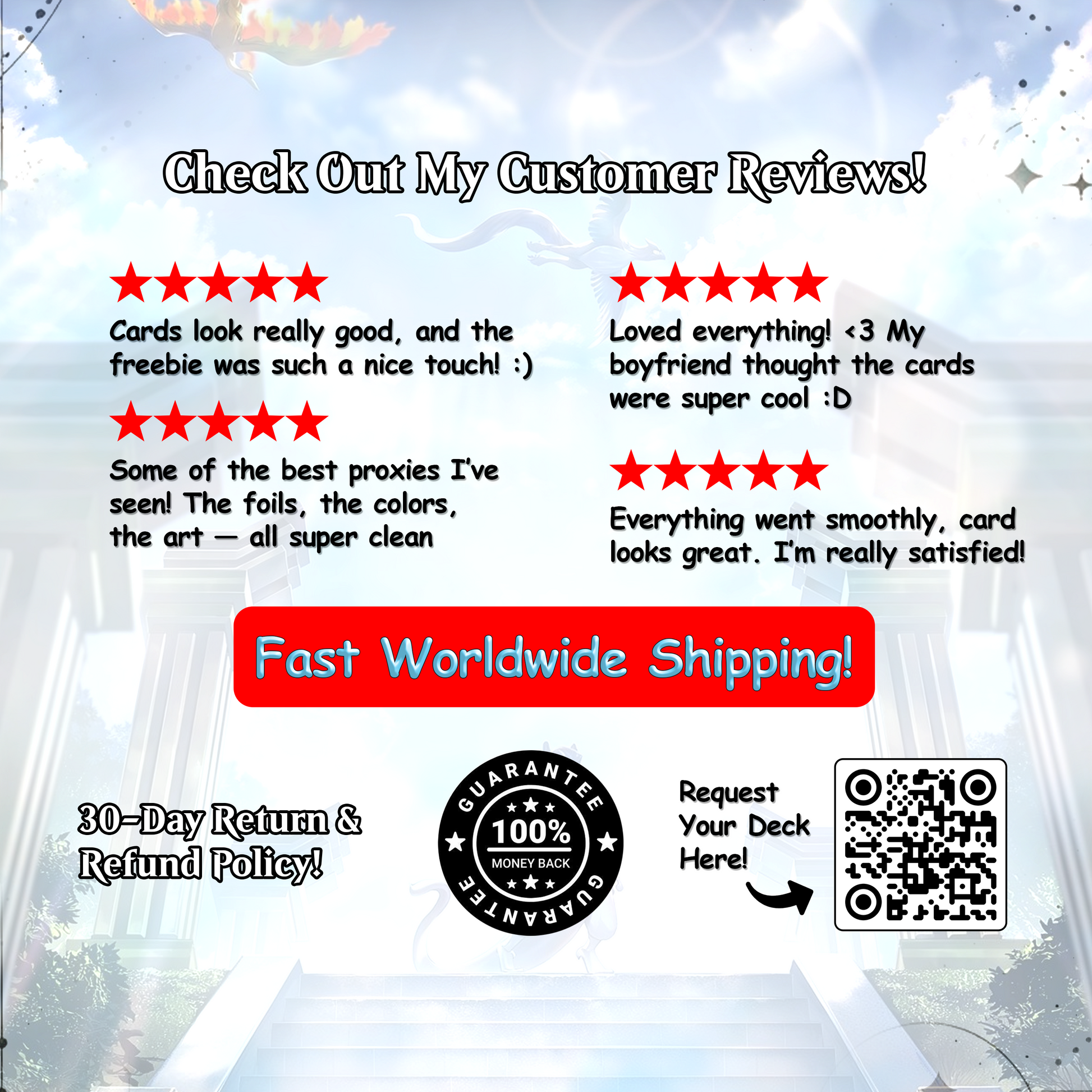 We encourage you to explore the photos and videos on our medias. If you have any questions or need further information, feel free to reach out to us at support@magicproxy.store —we’re here to help ensure you have the perfect deck for your collection or playstyle.
