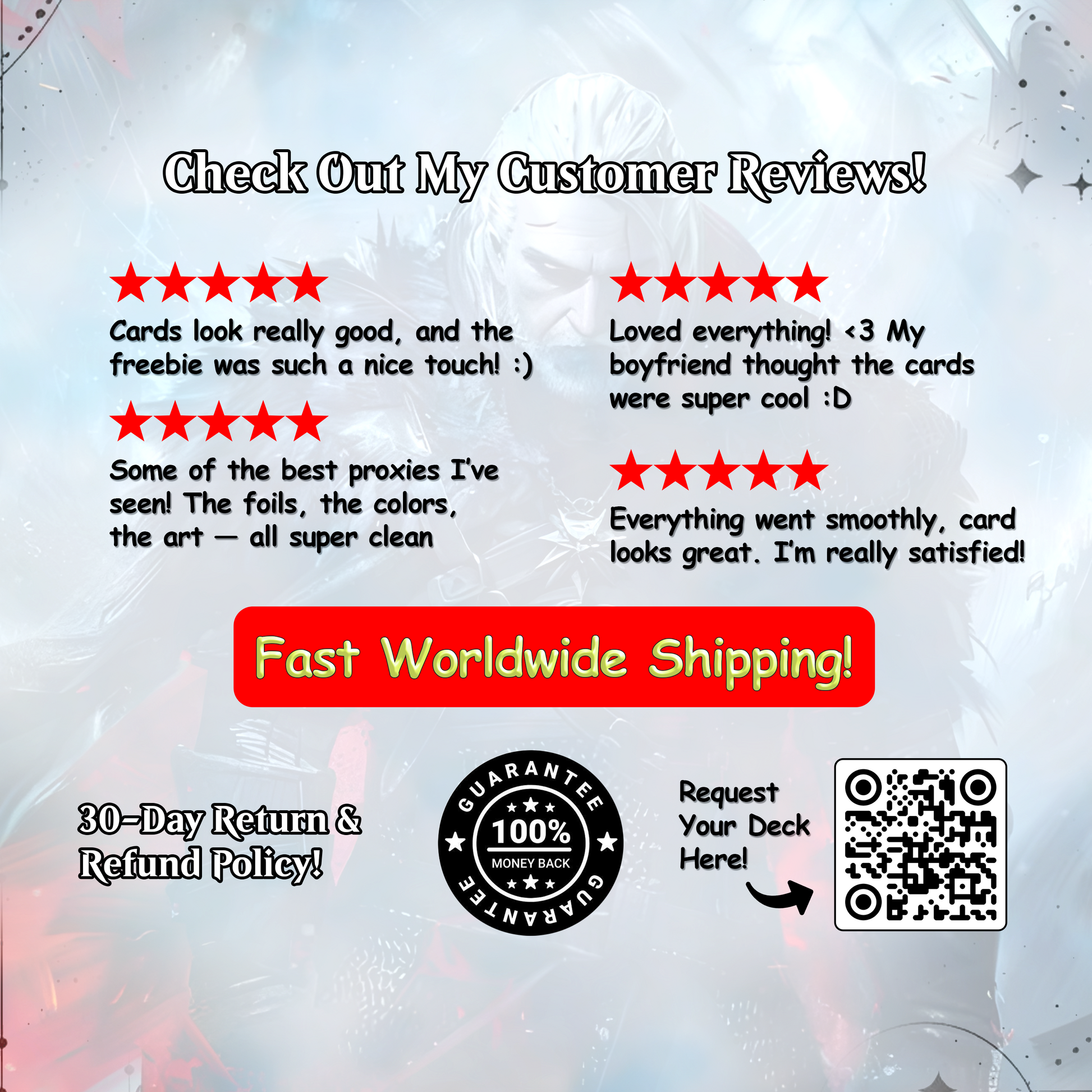We encourage you to explore the photos and videos on our medias. If you have any questions or need further information, feel free to reach out to us at support@magicproxy.store —we’re here to help ensure you have the perfect deck for your collection or playstyle.