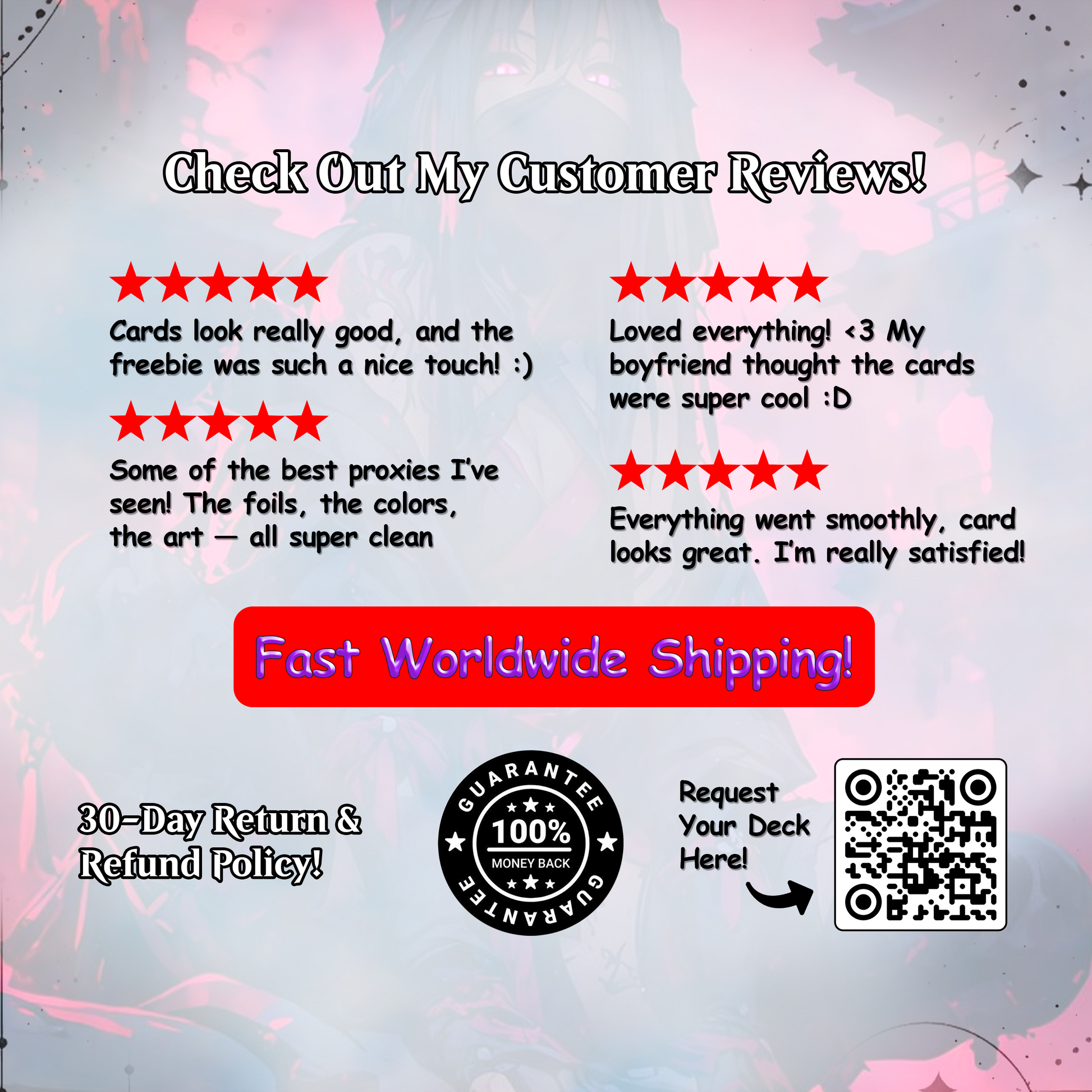 We encourage you to explore the photos and videos on our medias. If you have any questions or need further information, feel free to reach out to us at support@magicproxy.store —we’re here to help ensure you have the perfect deck for your collection or playstyle.